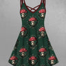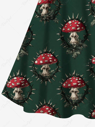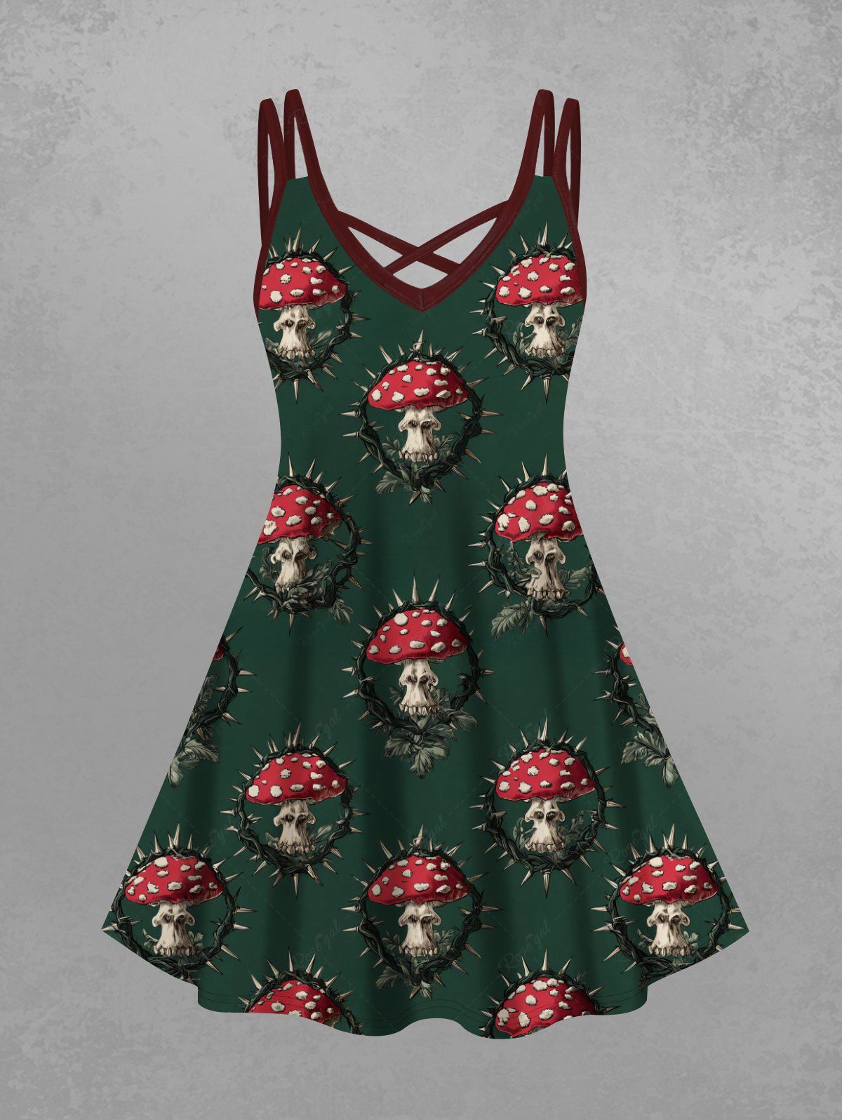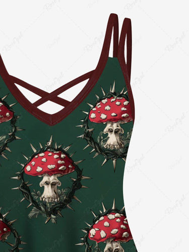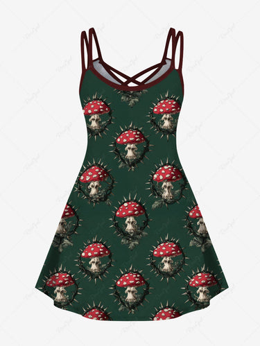 Gothic Plus Size Thorns Mushroom Print Crisscross Strappy A Line Cami Dress