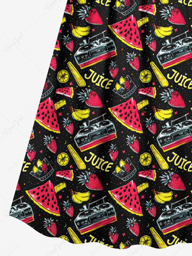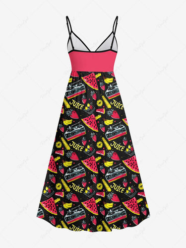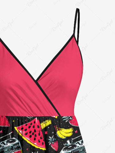 Gothic Plus Size Watermelon Banana Strawberry Print Hawaii Surplice A Line Cami Dress