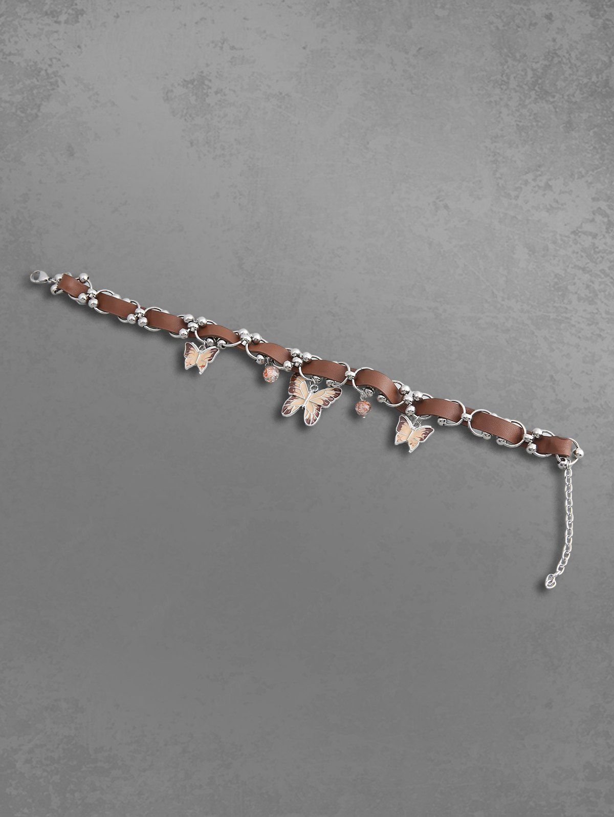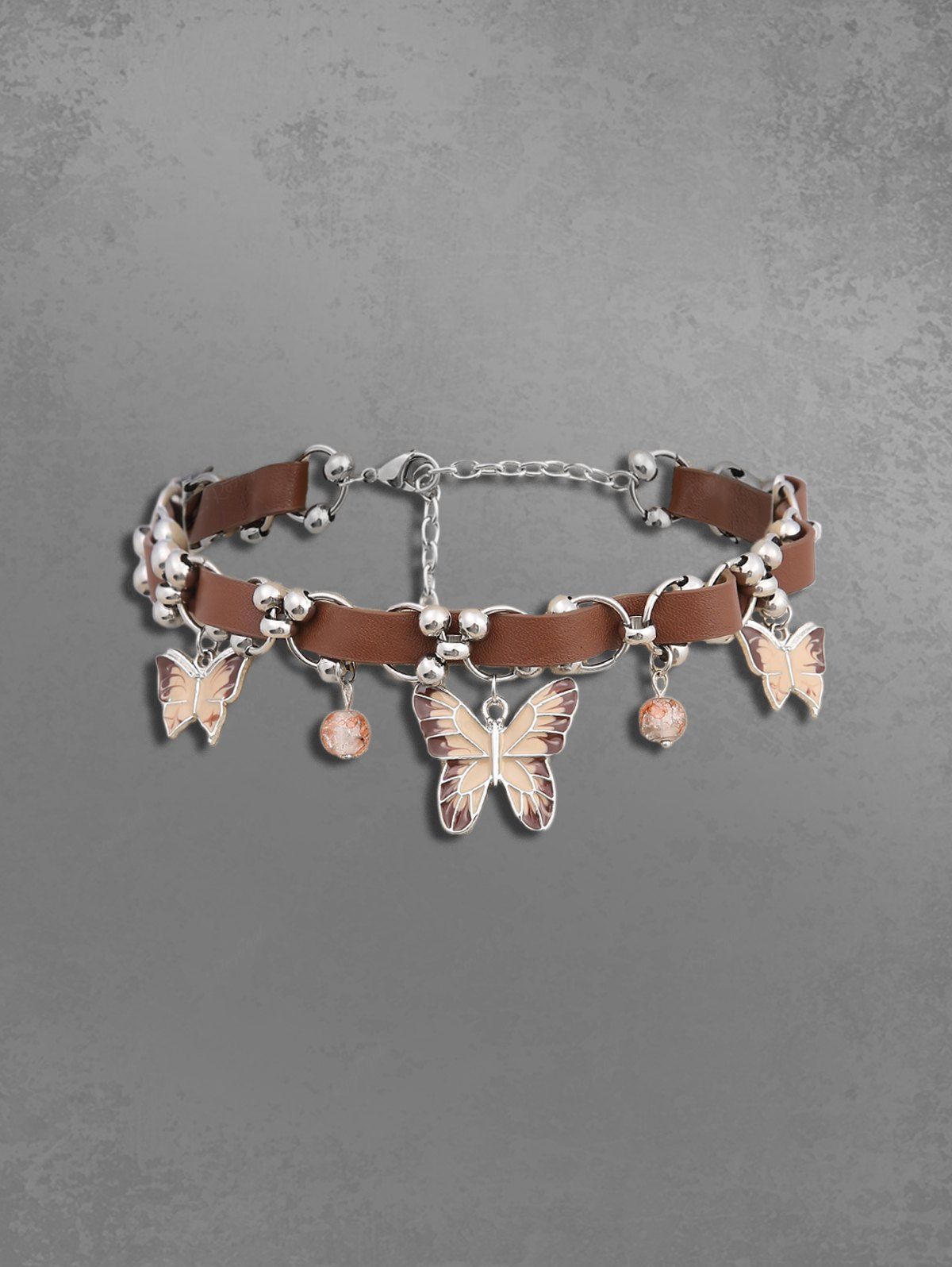 Gothic PU Strap Round Bead Butterfly Decor Choker Necklace