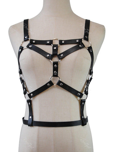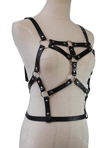 Gothic Punk PU Leather Harness O Ring Body Chain