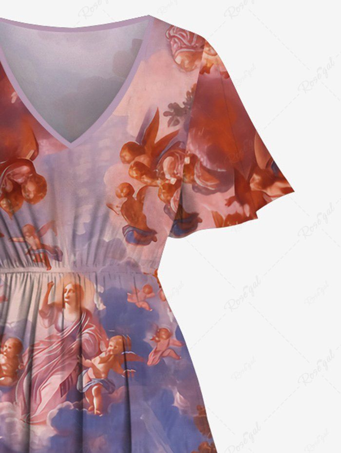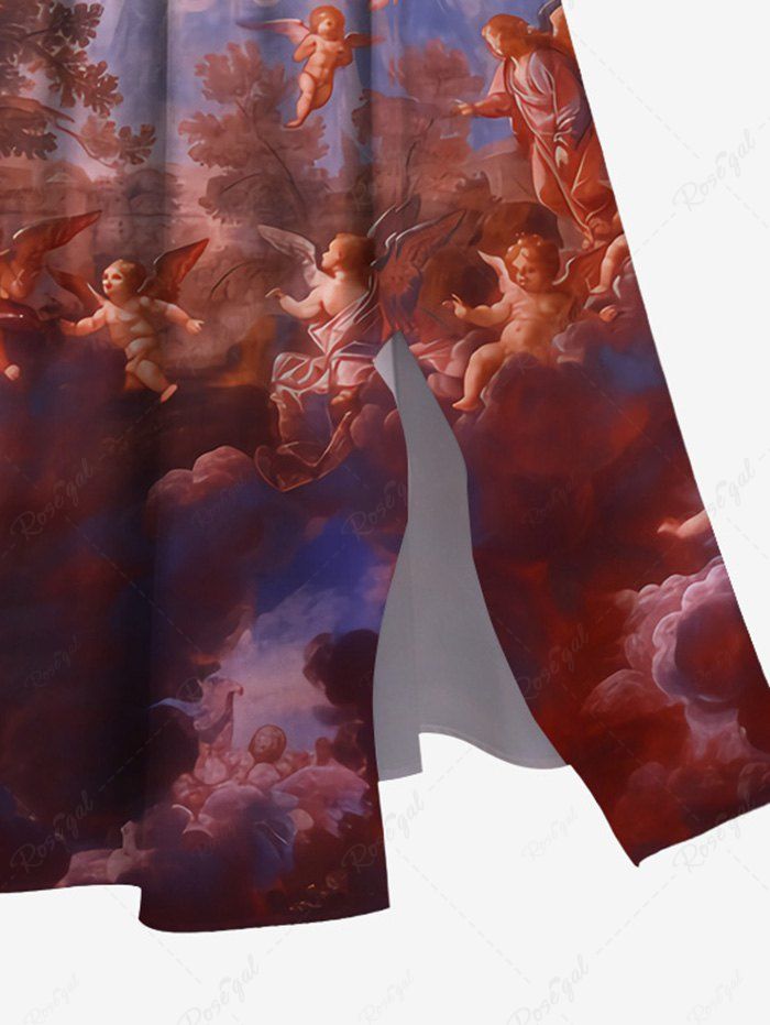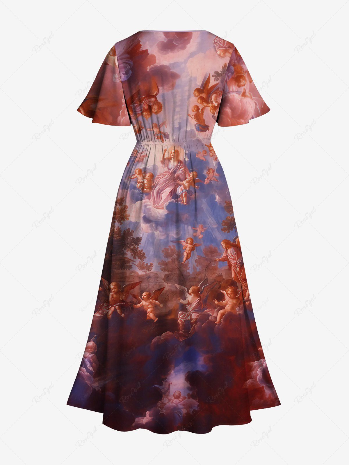 Gothic Plus Size Renaissance Angel Wings Cloud Sky Print Split Pocket A Line Dress