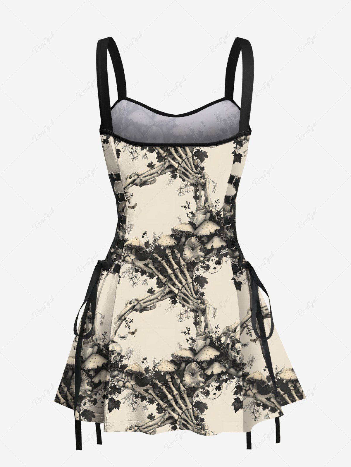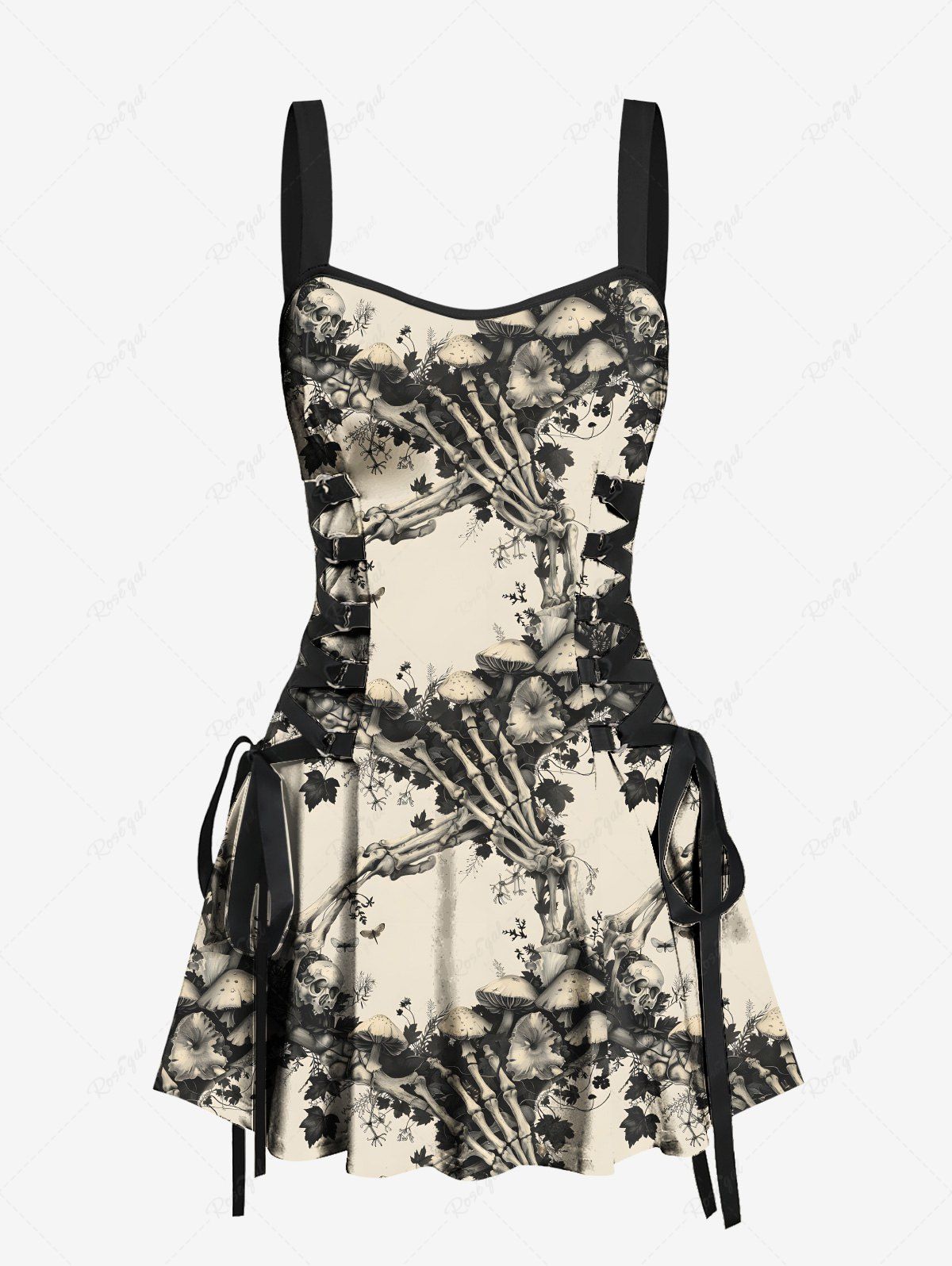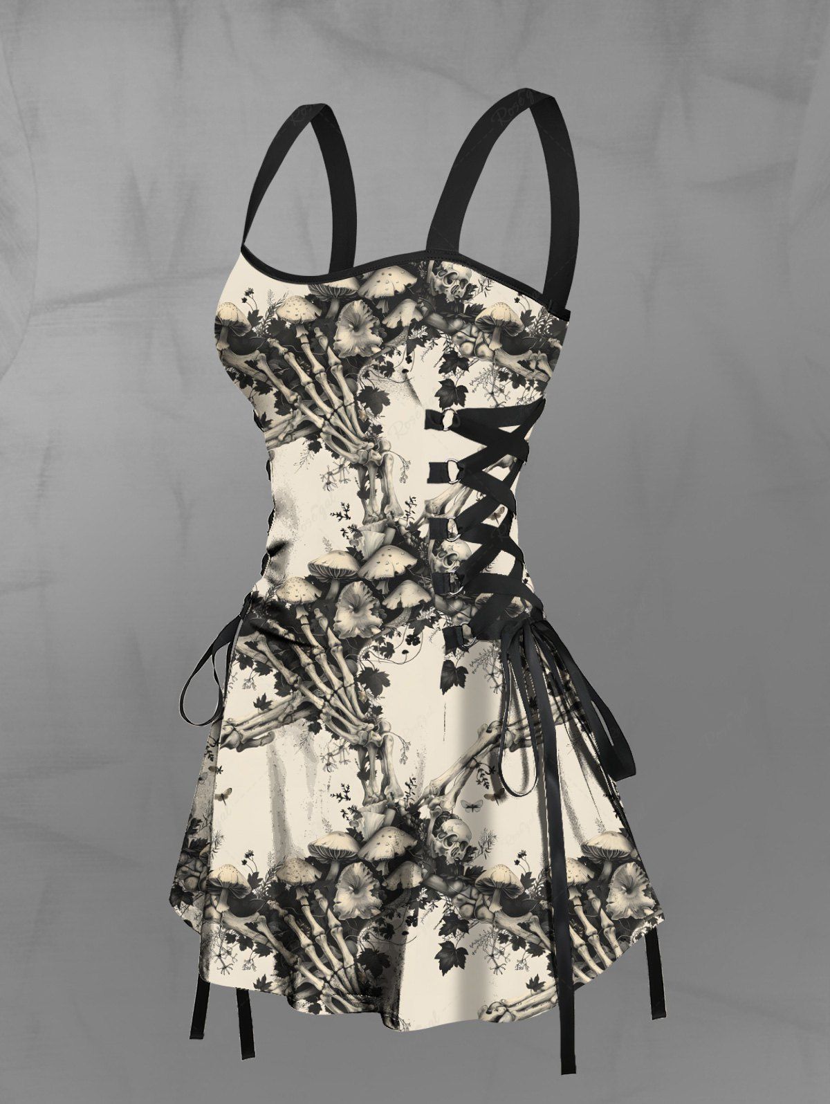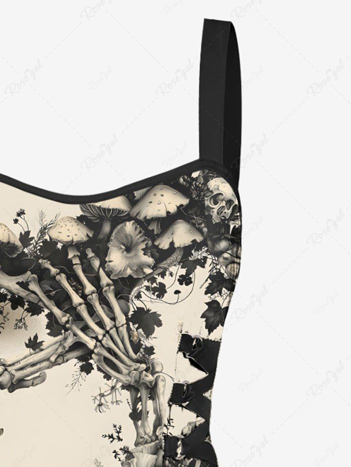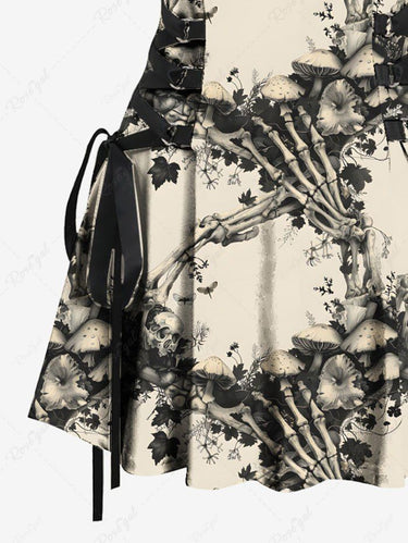 Gothic Skeleton Claw Mushroom Flowers Print Lace Up Tank Dress