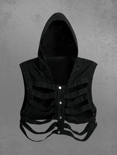 Gothic Skeleton Ladder Cut Out Buttons Denim Hooded Vest For Men