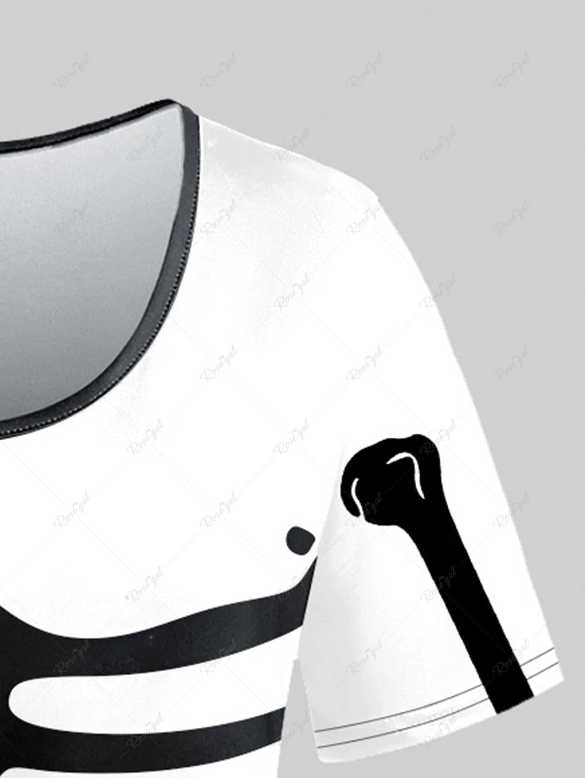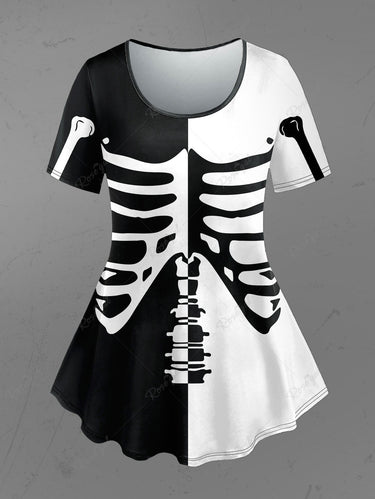 💗CHIARA Loves💗 Gothic Plus Size Skeleton Print Two Tone Halloween T-shirt