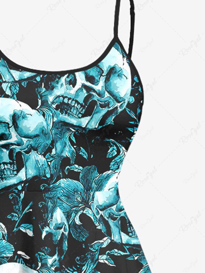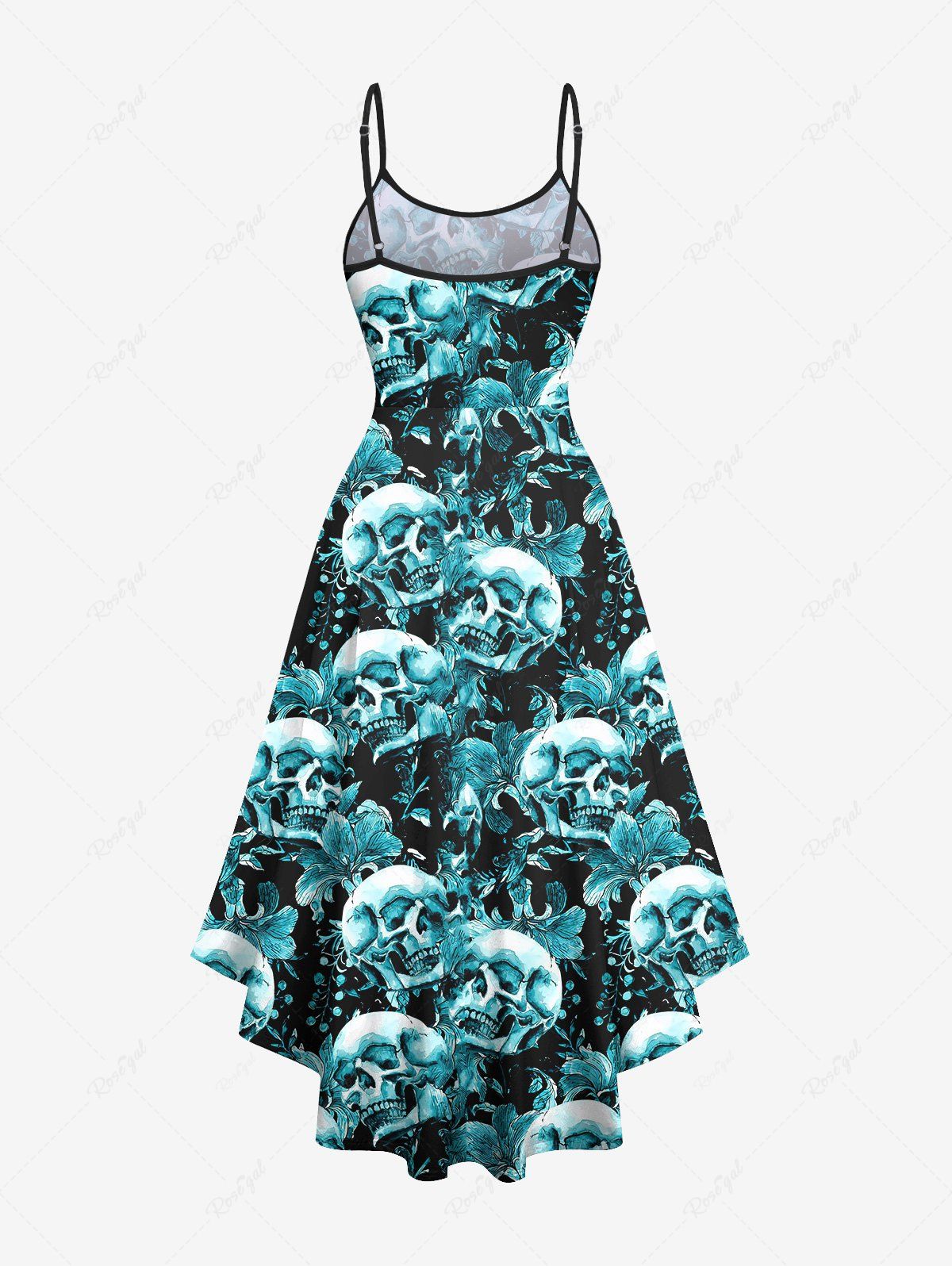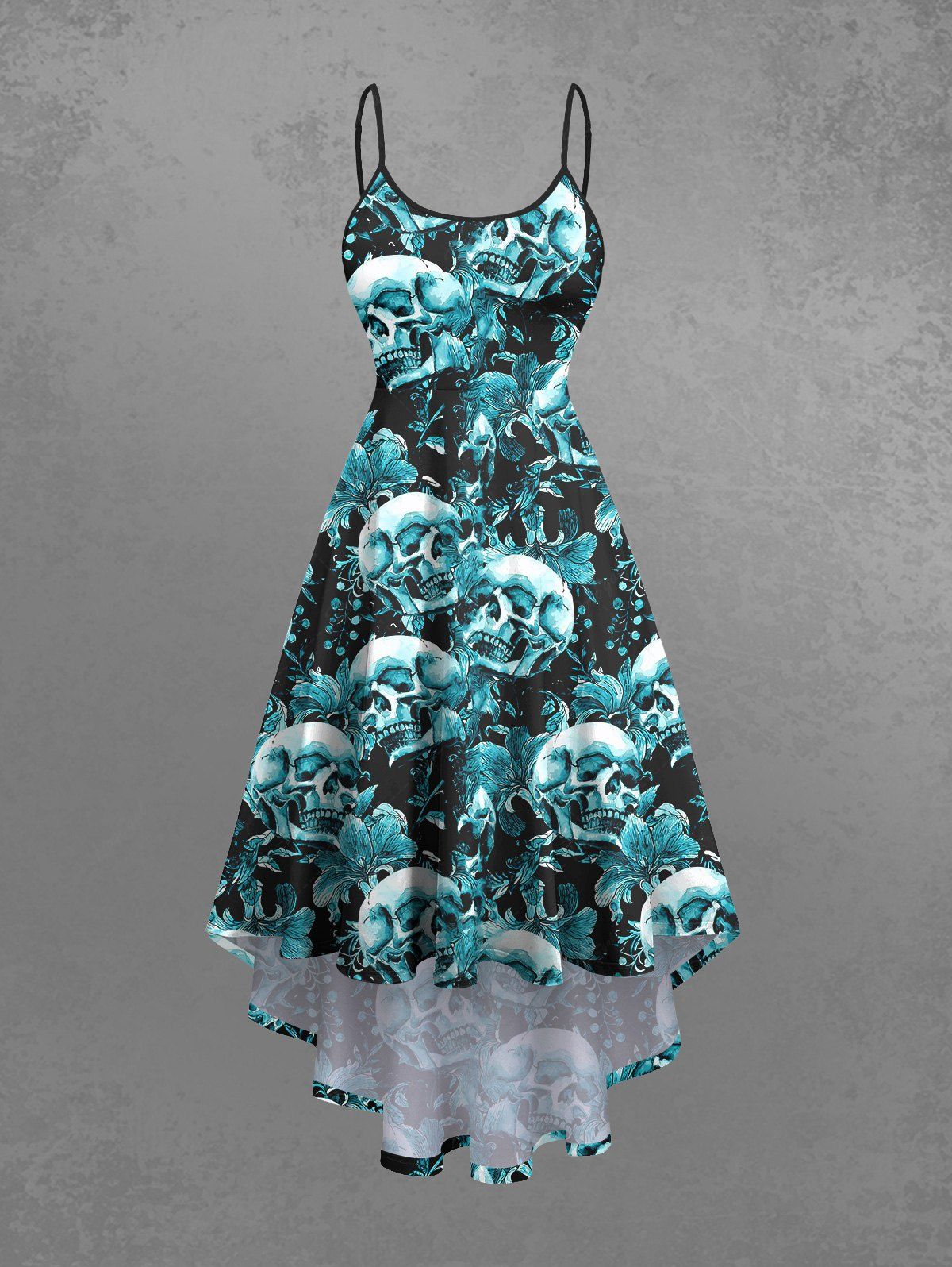 Gothic Plus Size Skulls Flowers Print High Low Dress