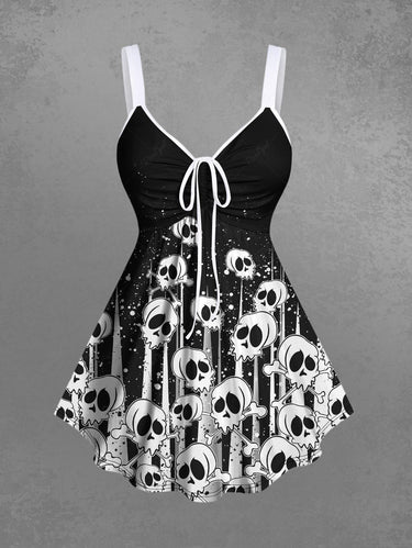 Gothic Plus Size Skulls Painting Splatter Print Cinched Backless Tank Top