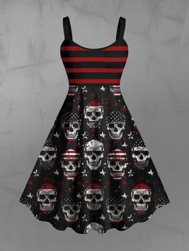 Gothic Plus Size Skulls Star American Flag Stripe Print Tank Dress