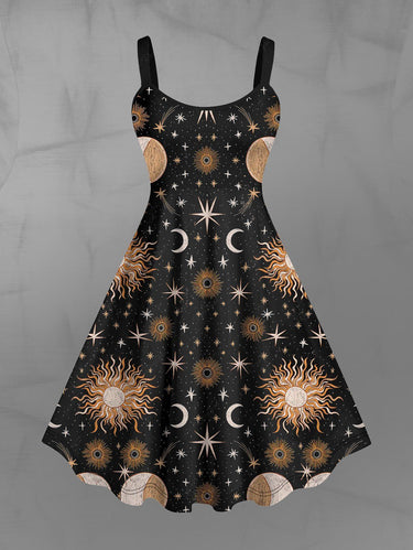 Gothic Plus Size Sun Moon Star Galaxy Print Backless A Line Tank Dress