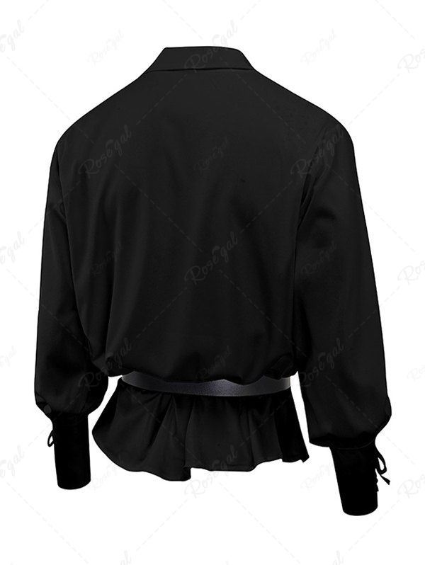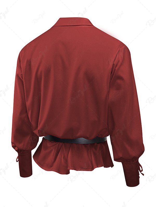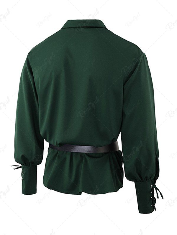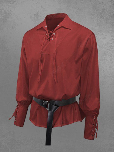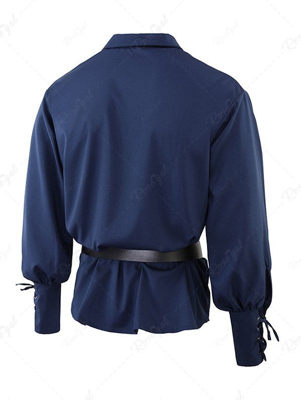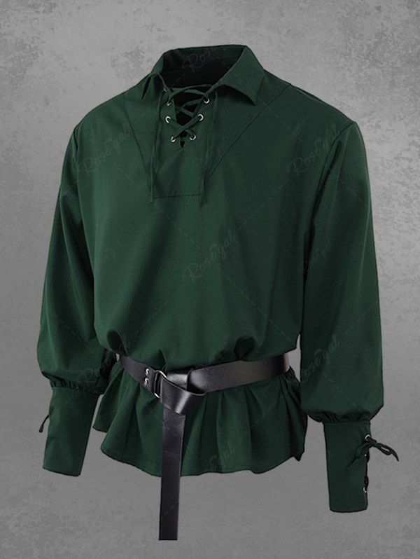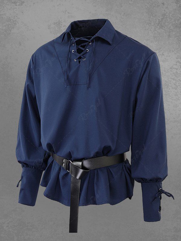 Gothic Turn-down Lace Up Solid Vintage Long Sleeves Shirt For Men