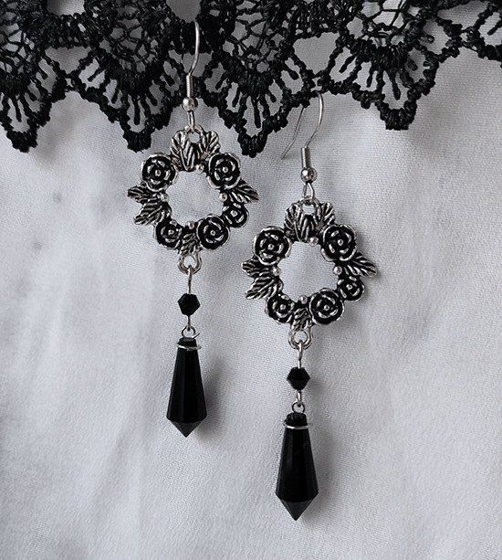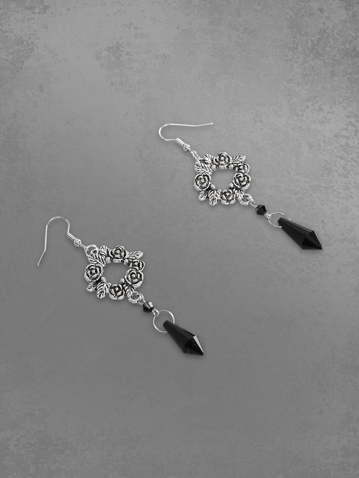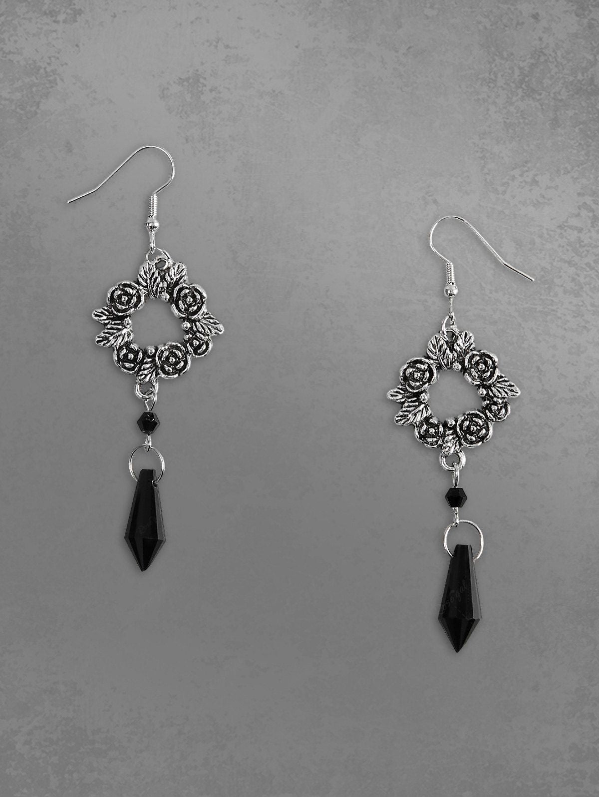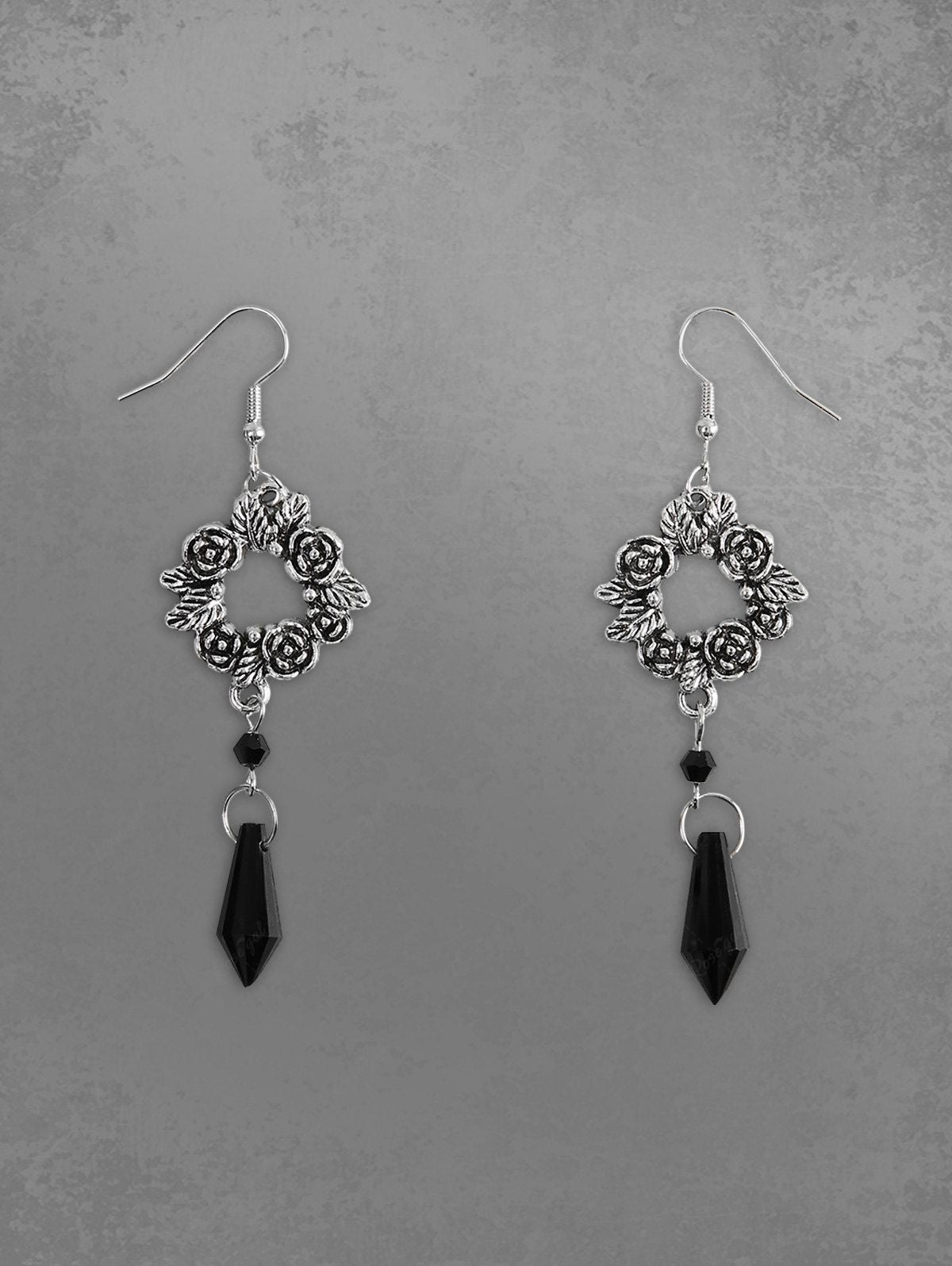 Gothic Vintage Rose Floral Wreath Faux Crystal Drop Earrings