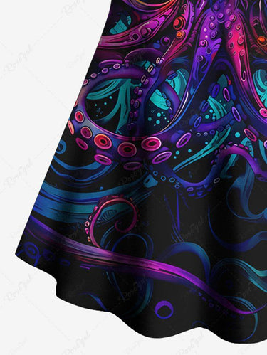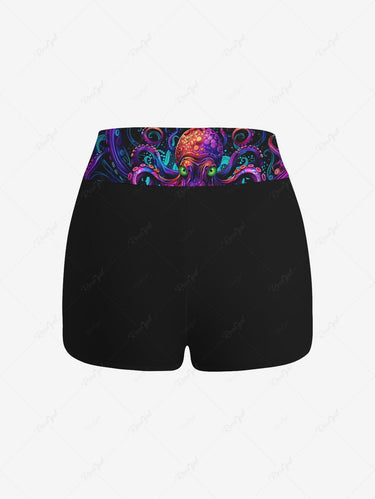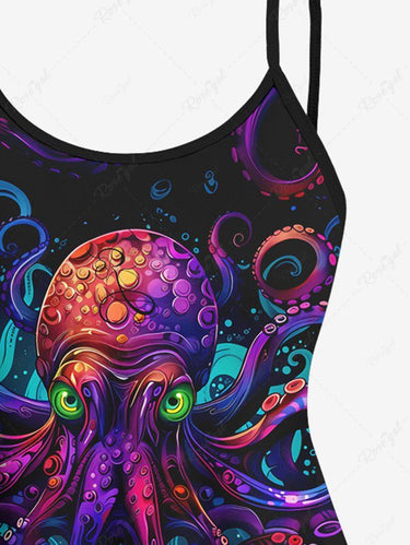 Gothic Plus Size Octopus Print Boyleg Tankini Swimsuit (Adjustable Shoulder Strap)
