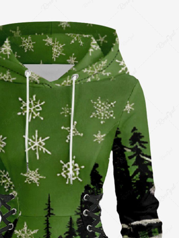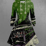 Gothic Plus Size Christmas Tree Snowflake Skull Train Print Lace Up A Line Hooded Dress