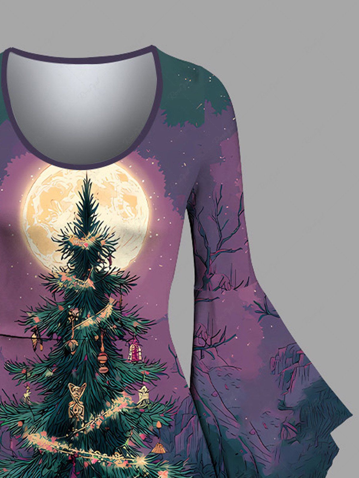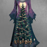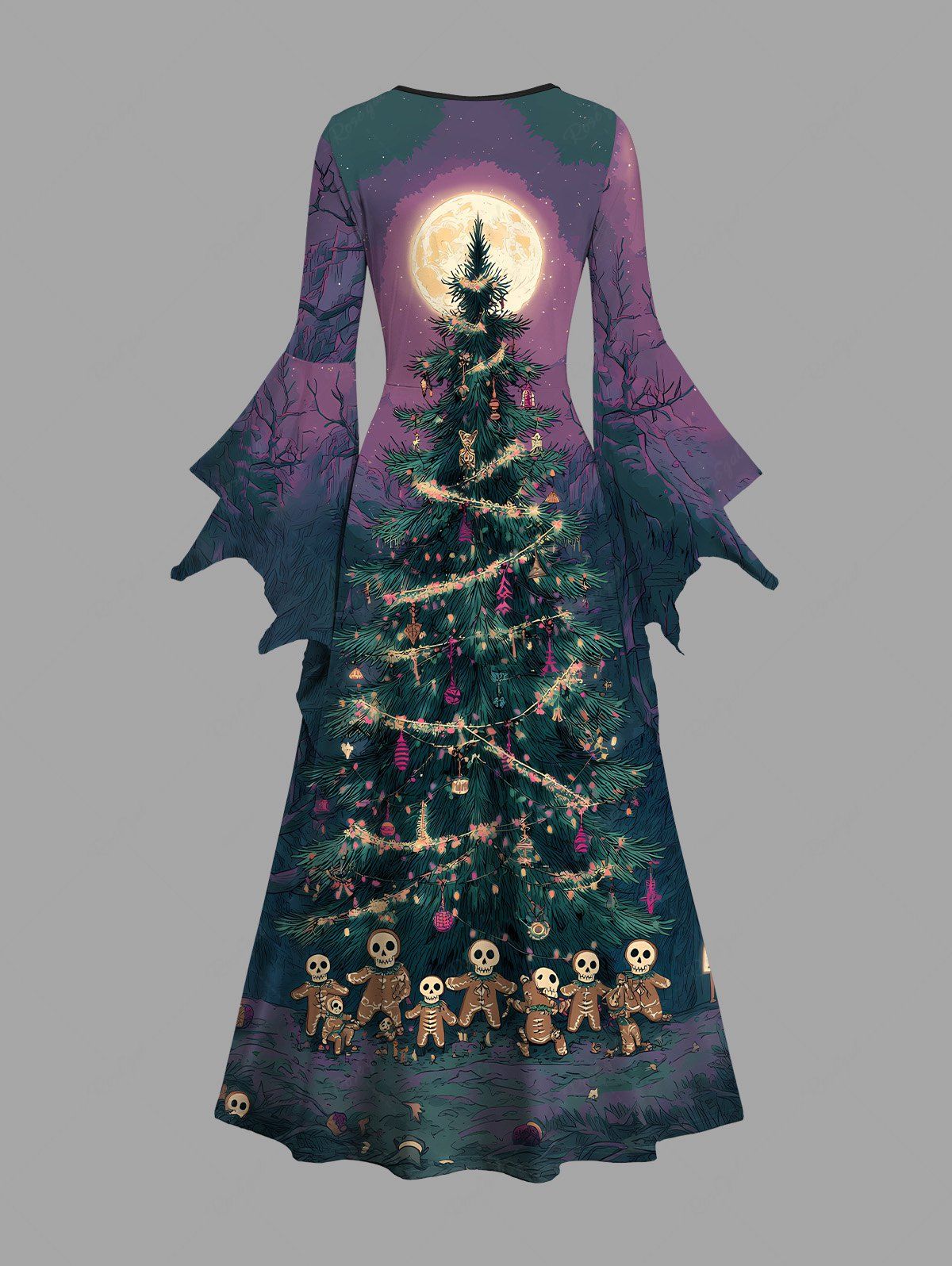Gothic Christmas Tree Skull Gingerbread Moon Print Ombre A Line Dress