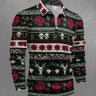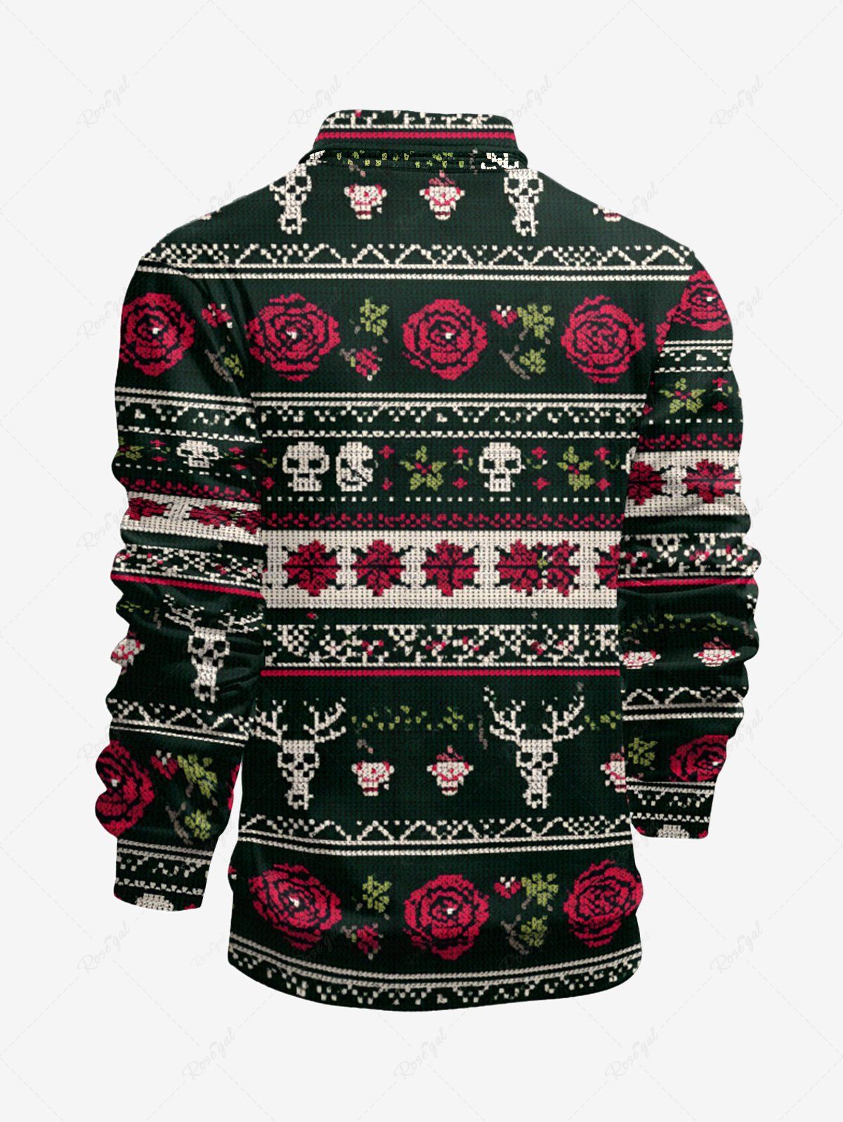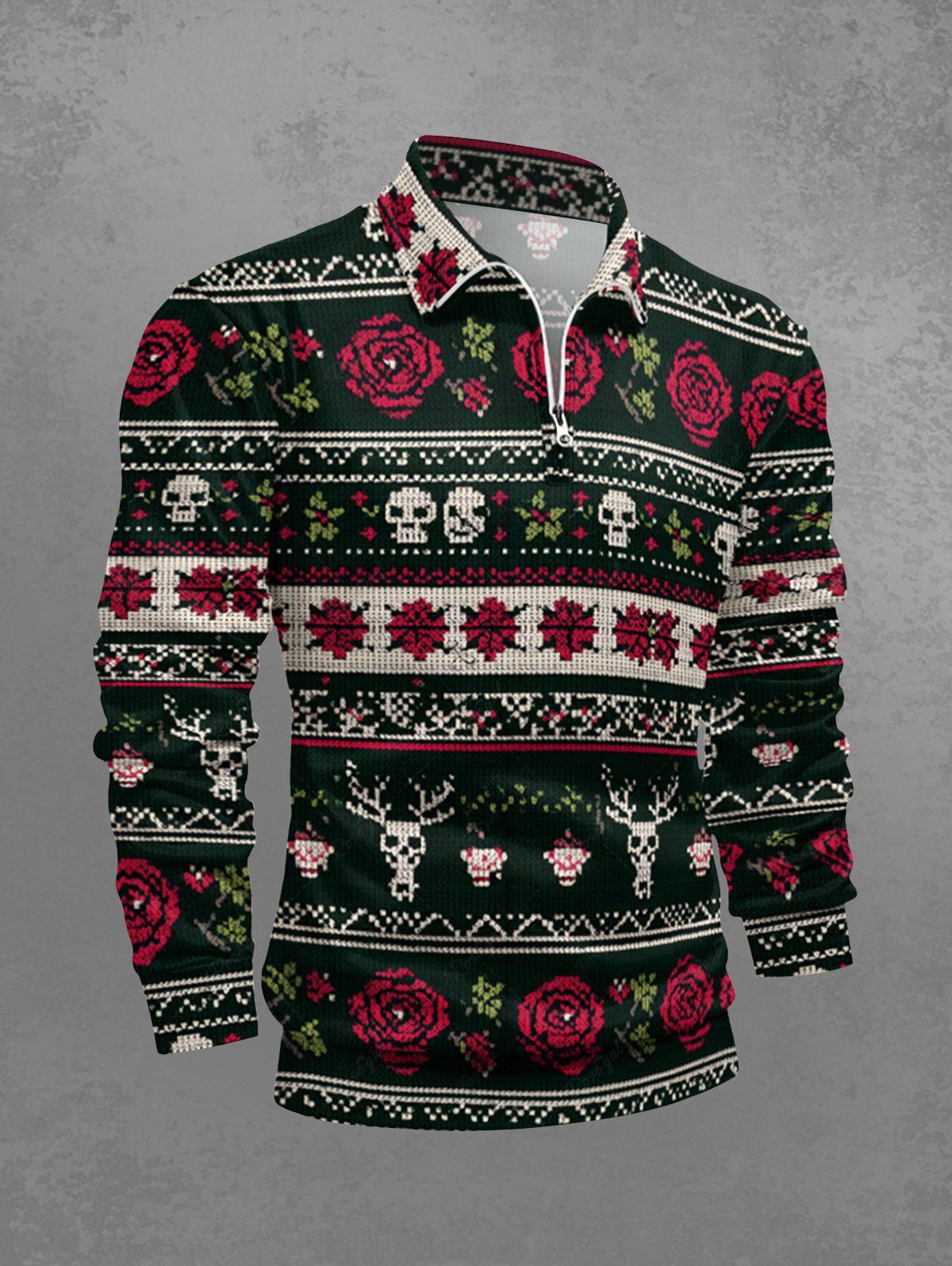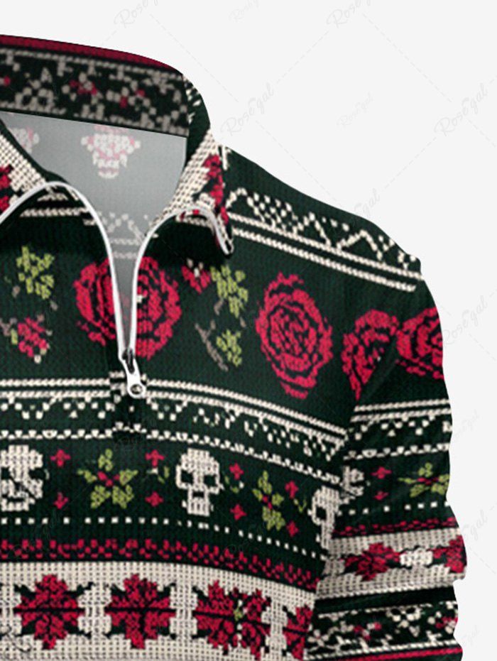 Gothic Plus Size Christmas Elk Skull Rose Flower Striped Print Half Zipper Polo Shirt For Men