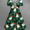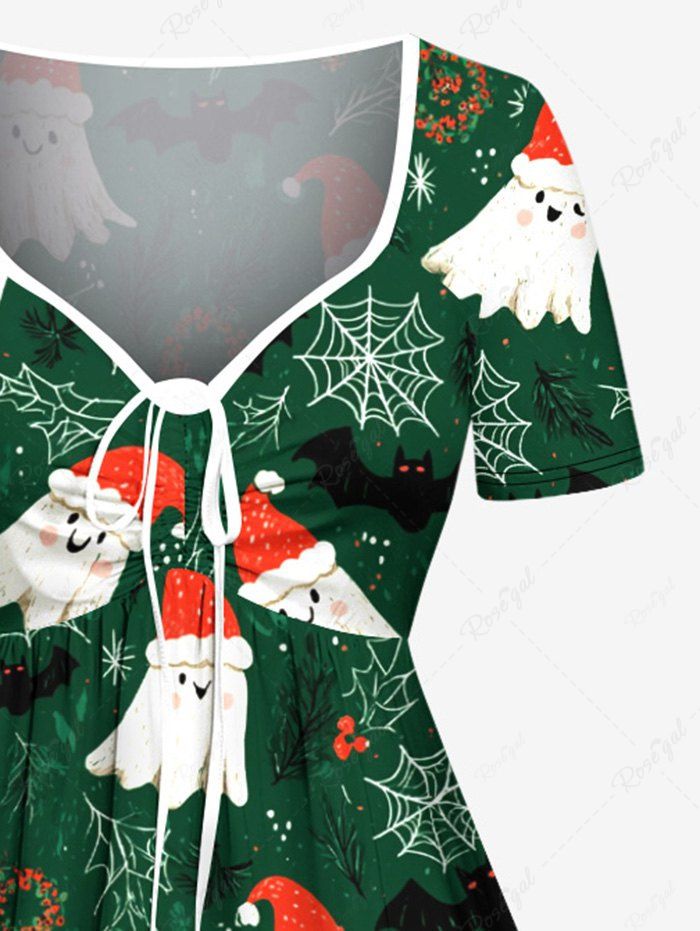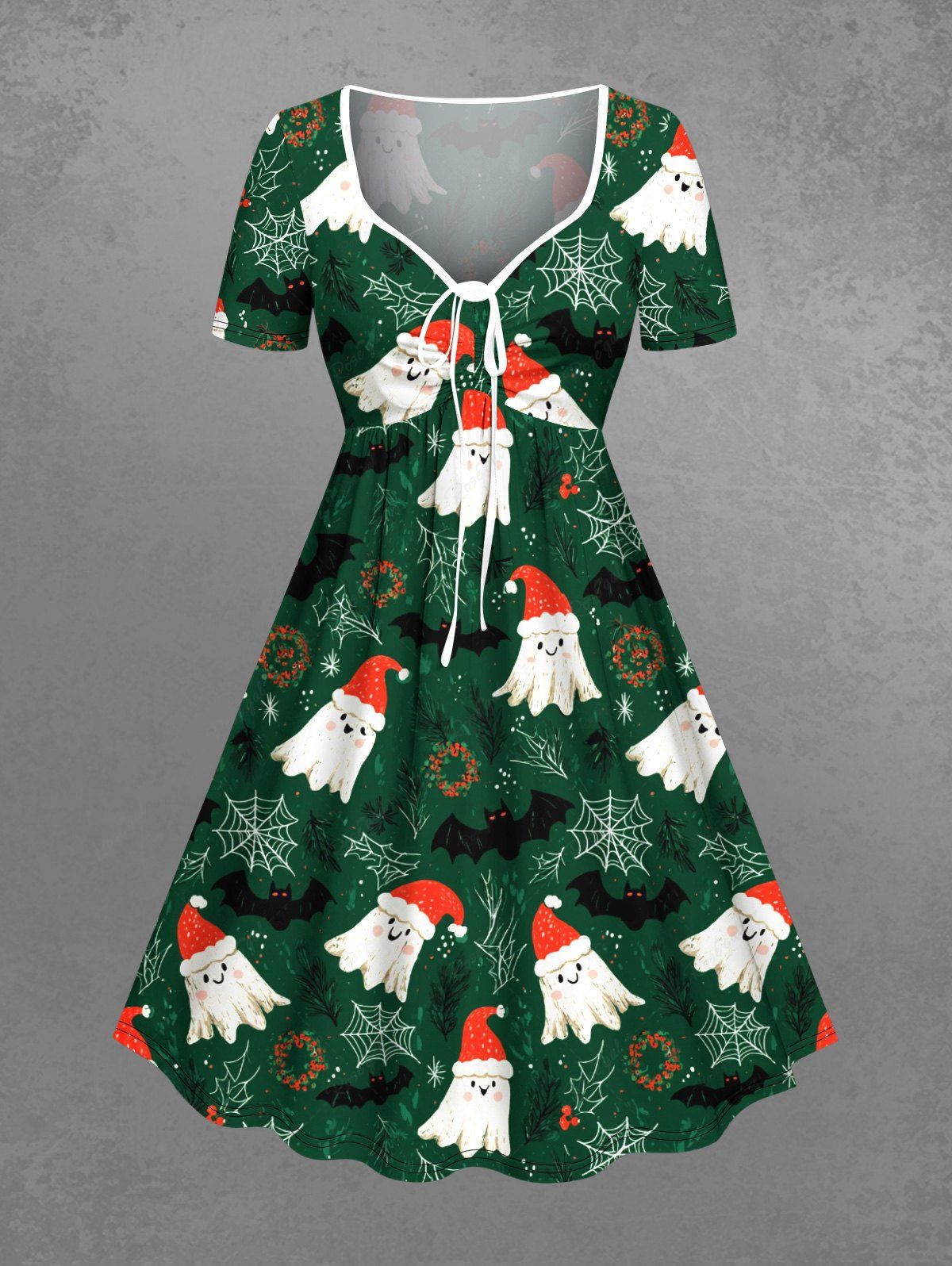 Gothic Plus Size Christmas Hat Ghost Spider Web Print Cinched A Line Dress