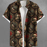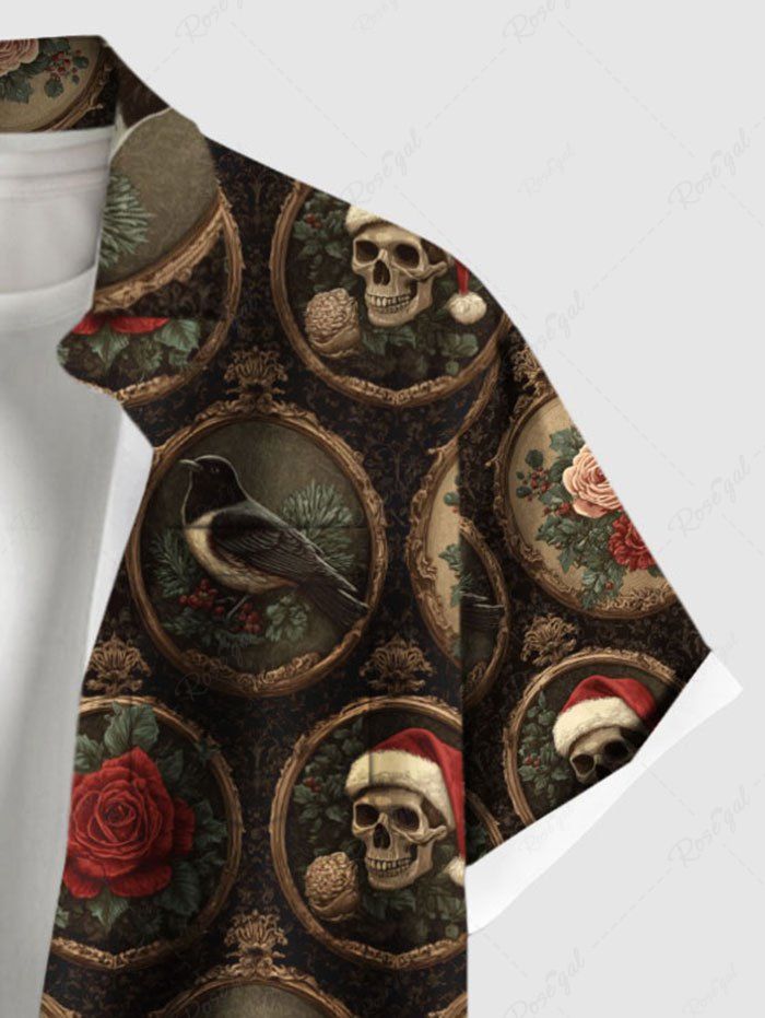 Gothic Plus Size Christmas Hat Skull Rose Flower Crow Mirror Print Distressed Shirt For Men