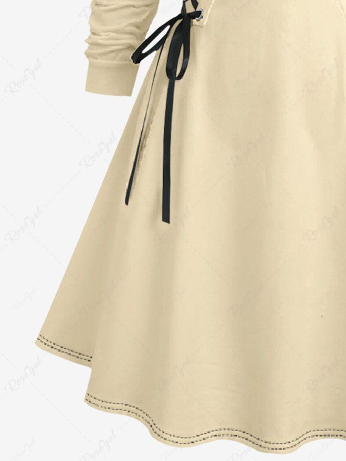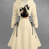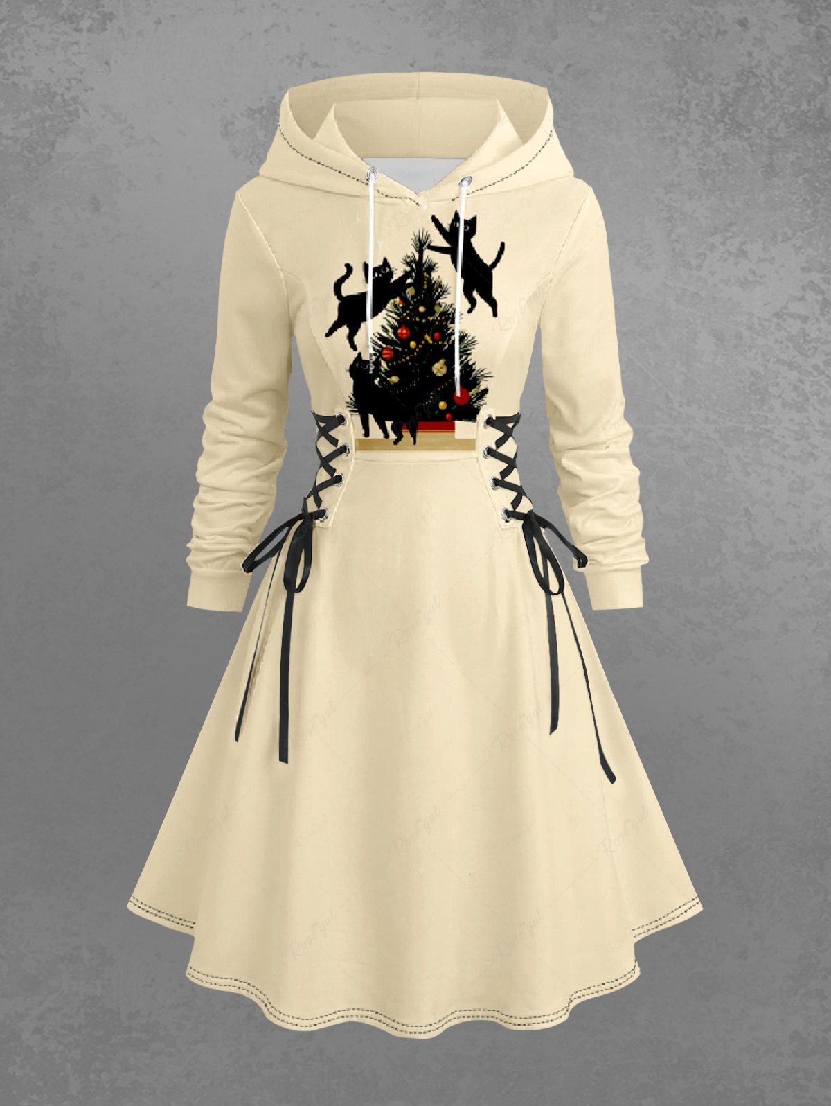 Gothic Plus Size Christmas Tree Ball Cat Print Lace Up Hooded A Line Dress