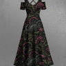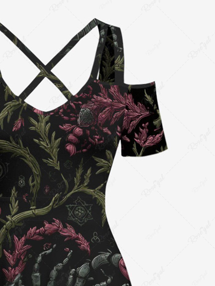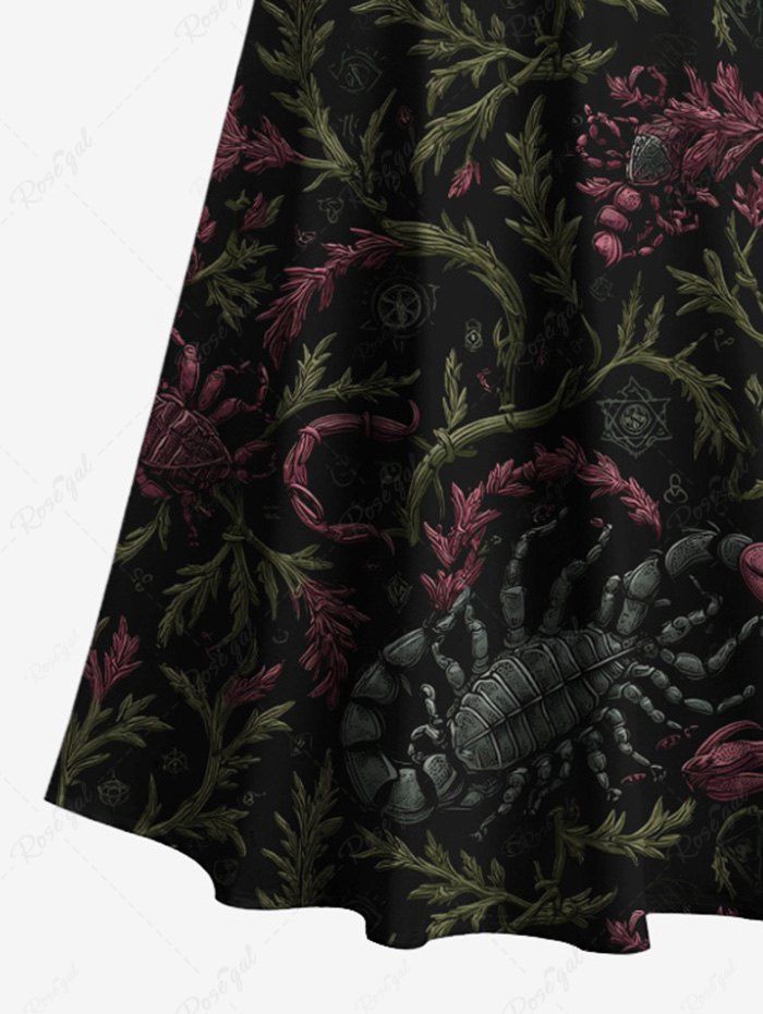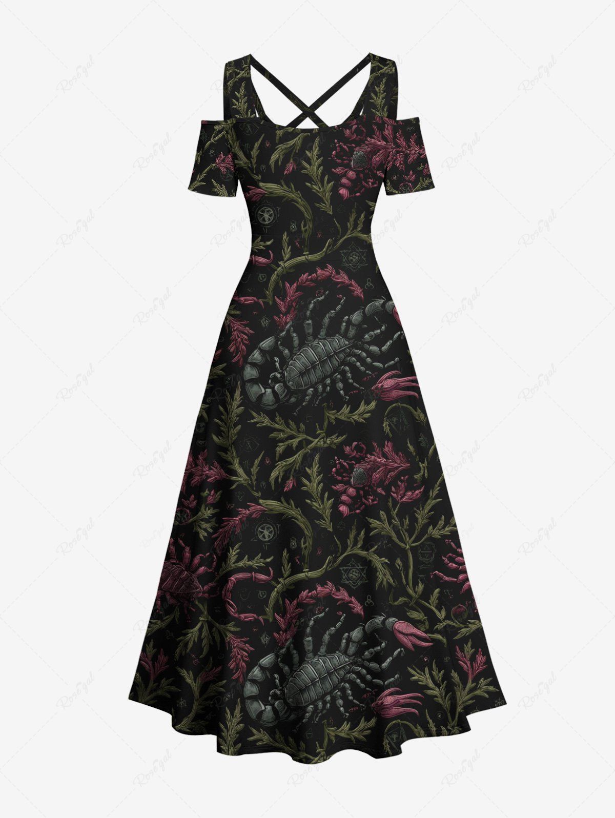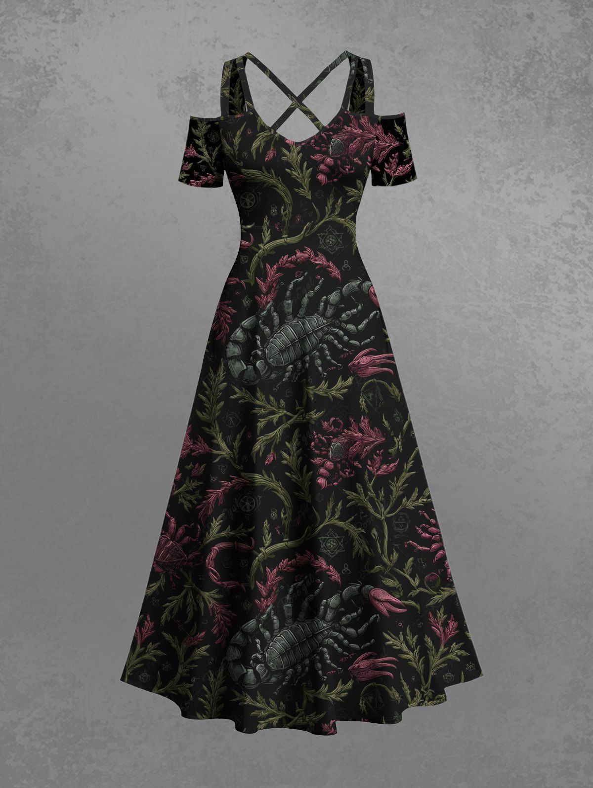 Gothic Plus Size Scorpion Grass Print Cold Shoulder Crisscross A Line Maxi Dress