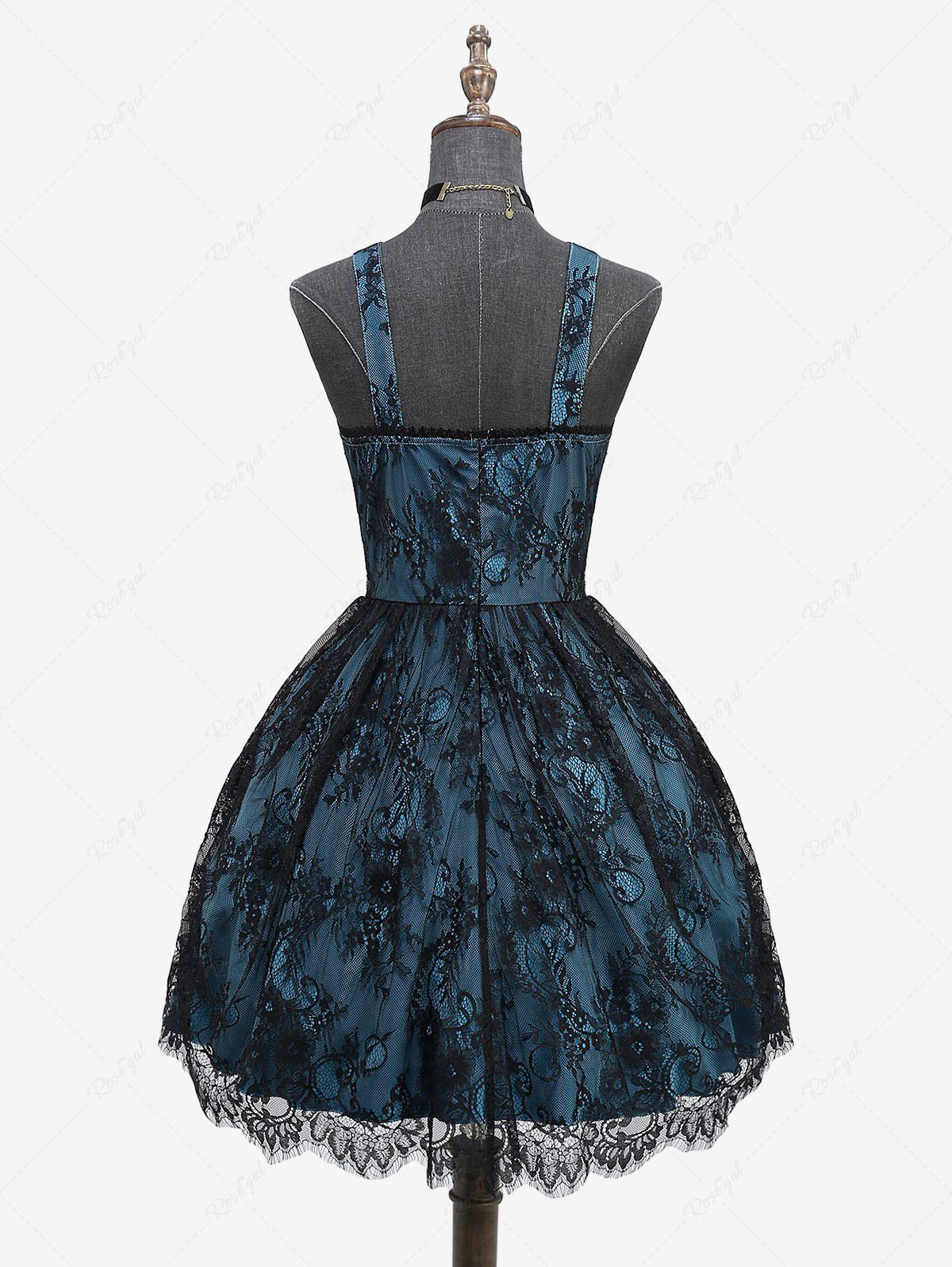 Gothic Floral Lace Overlay Cross Chain Layered Ruffles A Line Tank Dress