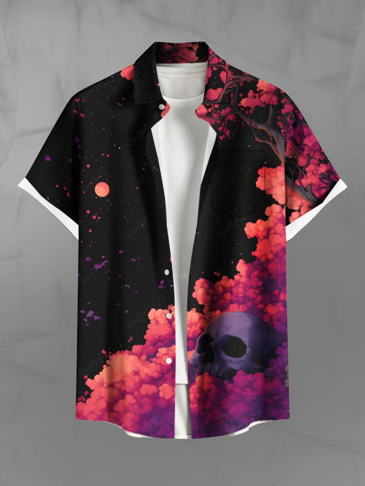 Gothic Plus Size Skull Tree Galaxy Print Button Pocket Shirt For Men