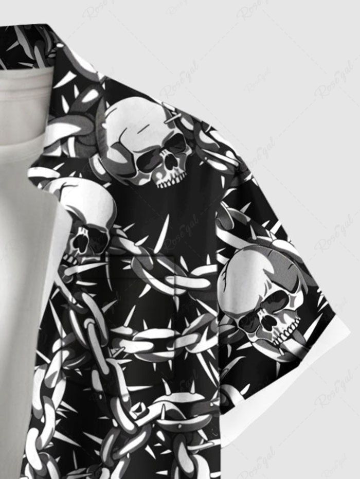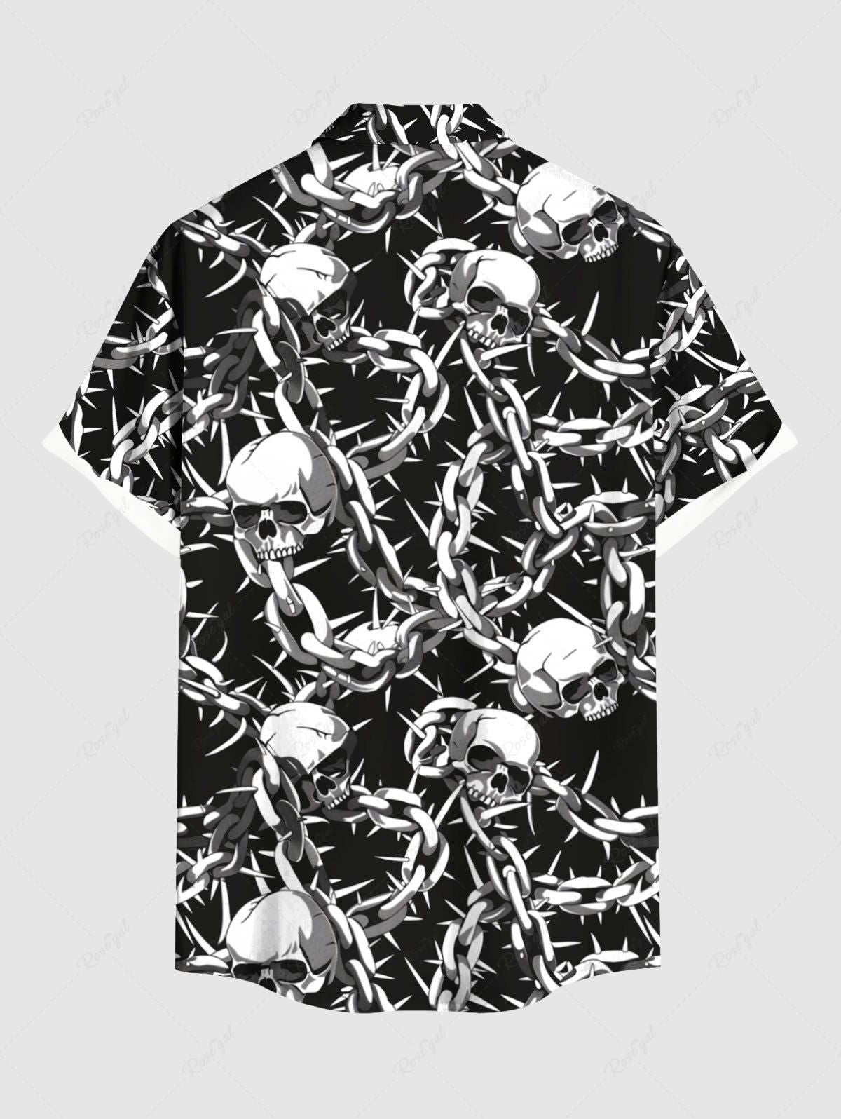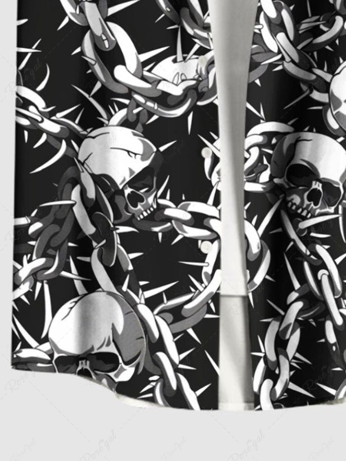 Gothic Plus Size Skulls Chains Print Buttons Pocket Halloween Shirt For Men