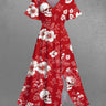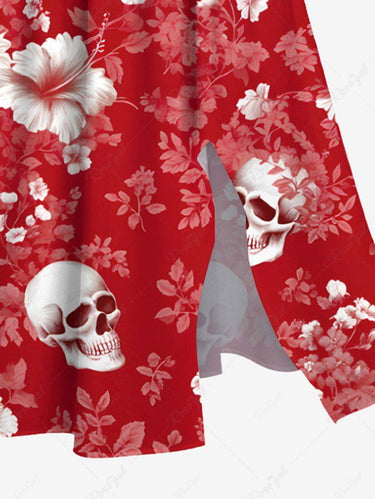 Gothic Plus Size Skull Ombre Hibiscus Flower Branch Print Hawaii Split Pocket A Line Midi Dress