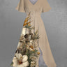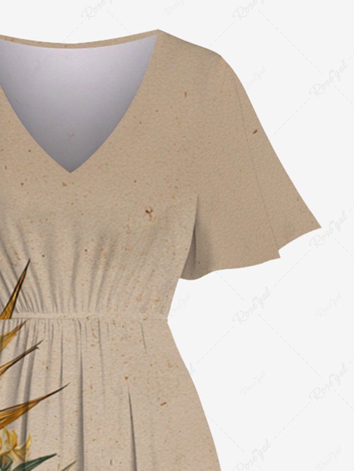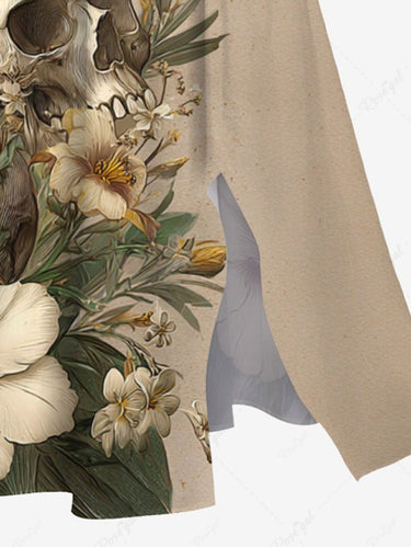 Gothic Plus Size Skulls Flower Leaf Print Split Midi Dress