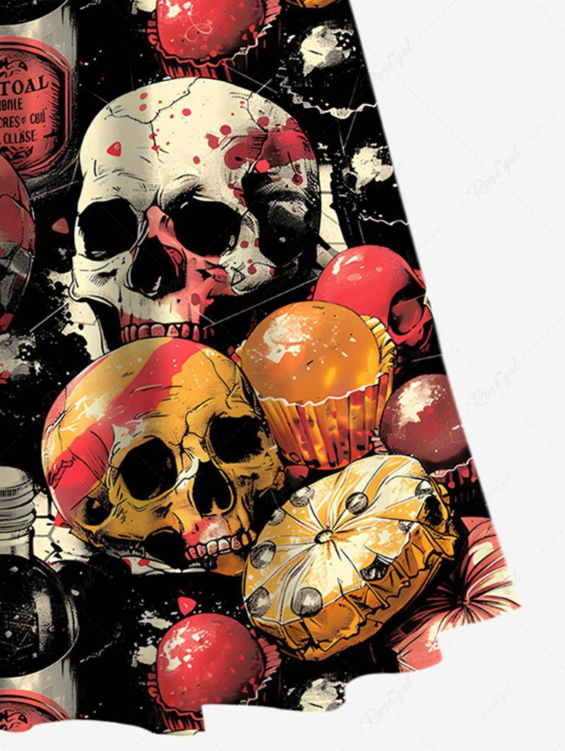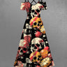 Gothic Plus Size Skulls Bottles Cakes Print Cold Shoulder Crisscross Halloween Maxi Dress