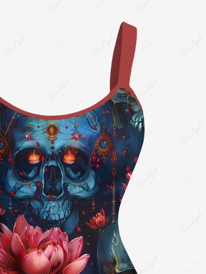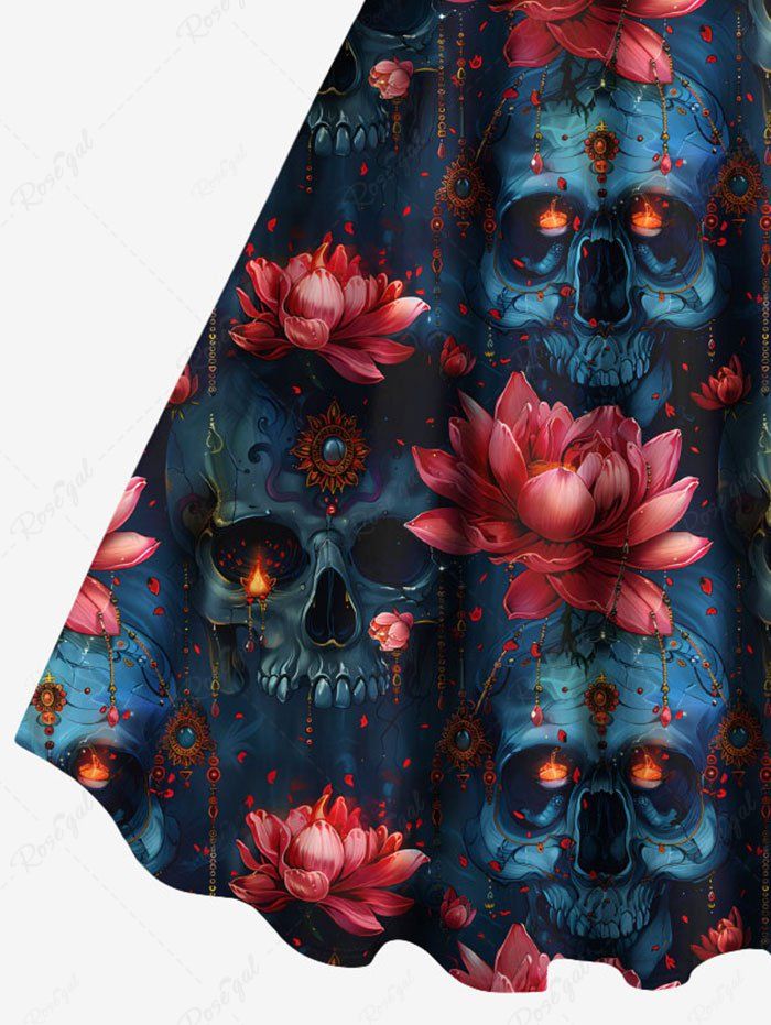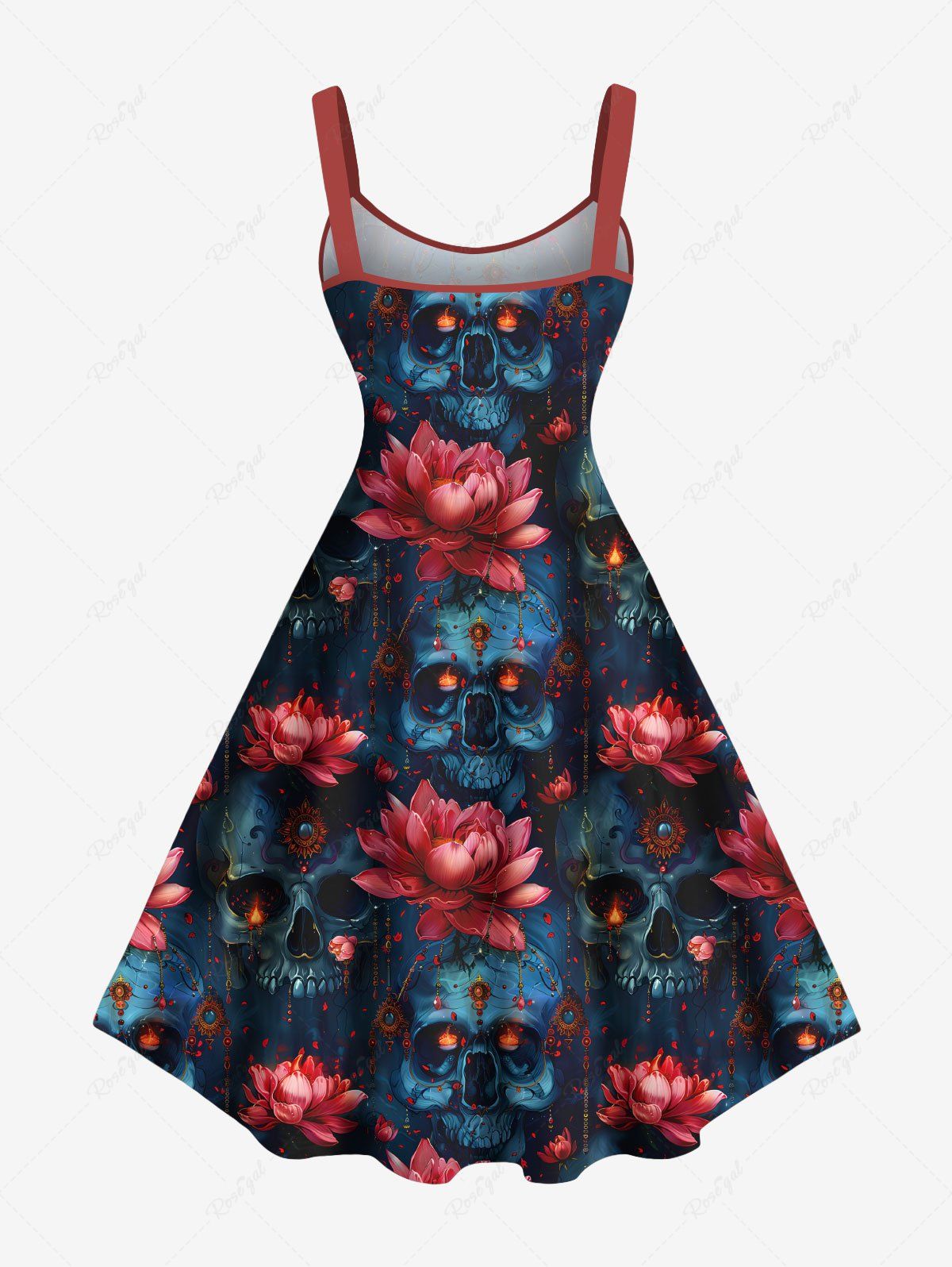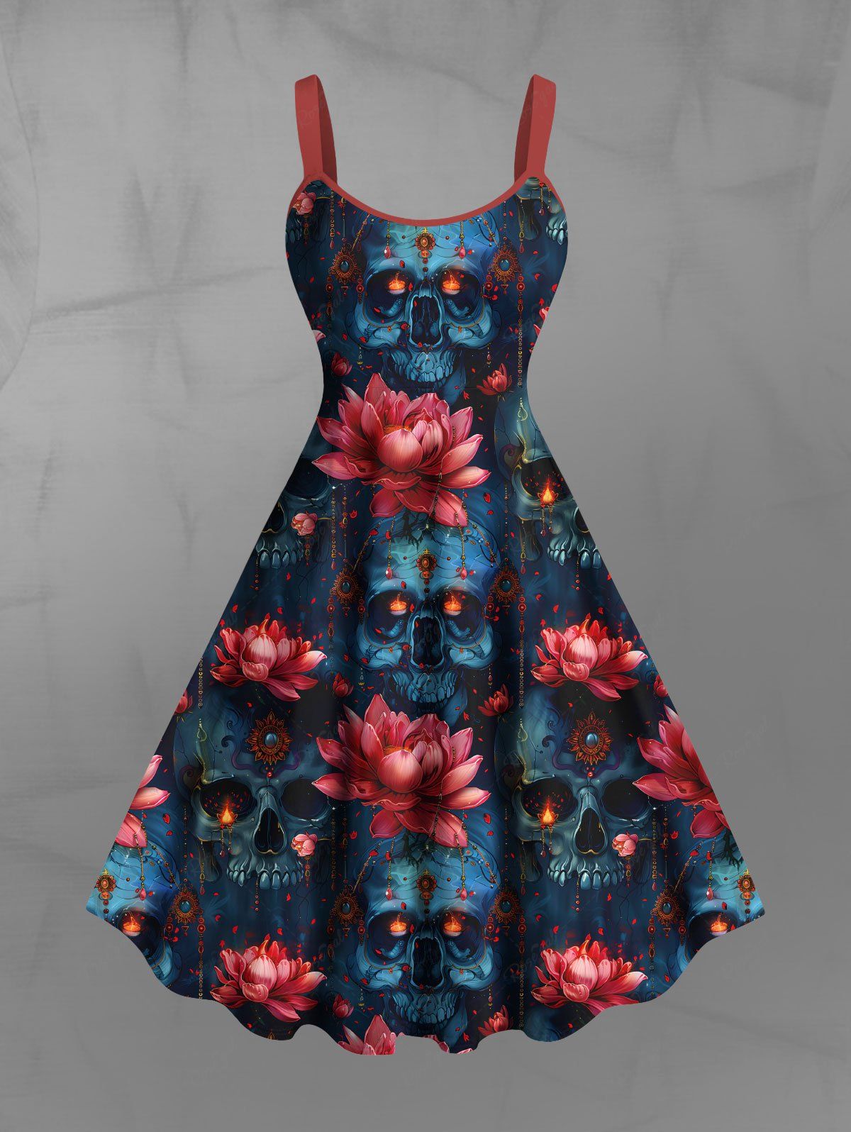 Gothic Plus Size Halloween Flowers Skulls Fire Flame Print Tank Dress