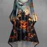 Gothic Plus Size Halloween Pumpkin Bat Cat Print Ruched Flare Sleeves High Low Dress