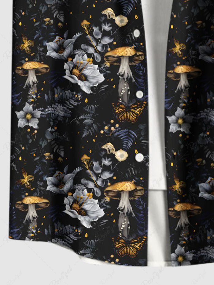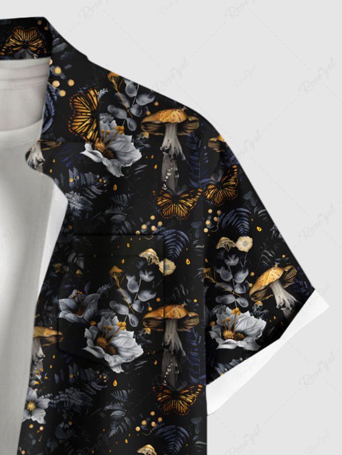 Gothic Plus Size Flowers Leaf Mushroom Print Buttons Pocket Shirt For Men