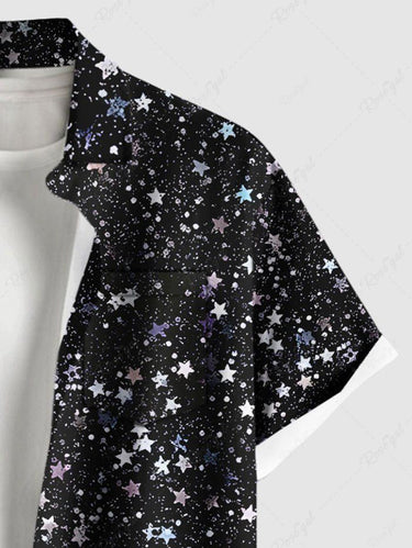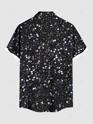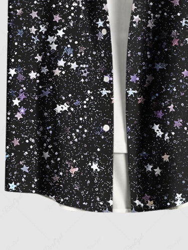 Gothic Plus Size Stars Galaxy Print Button Pocket Shirt For Men