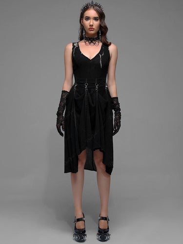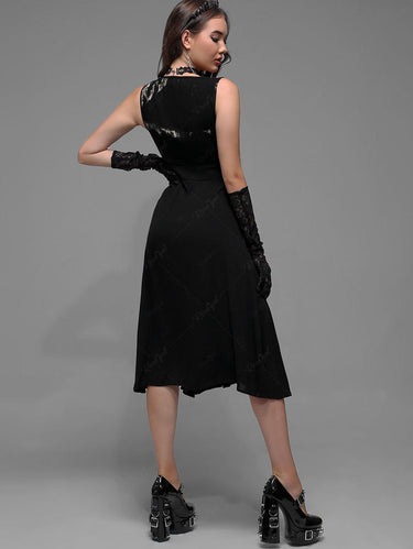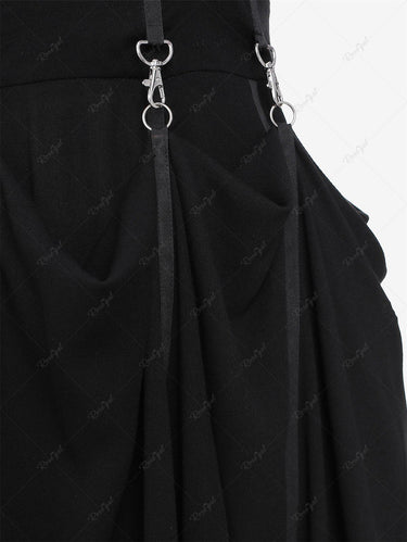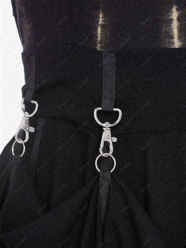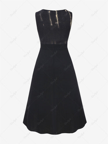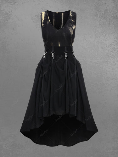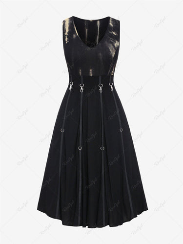 Gothic Plus Size Tie Dye Panel Snap Hook Design Sleeveless Midi Dress
