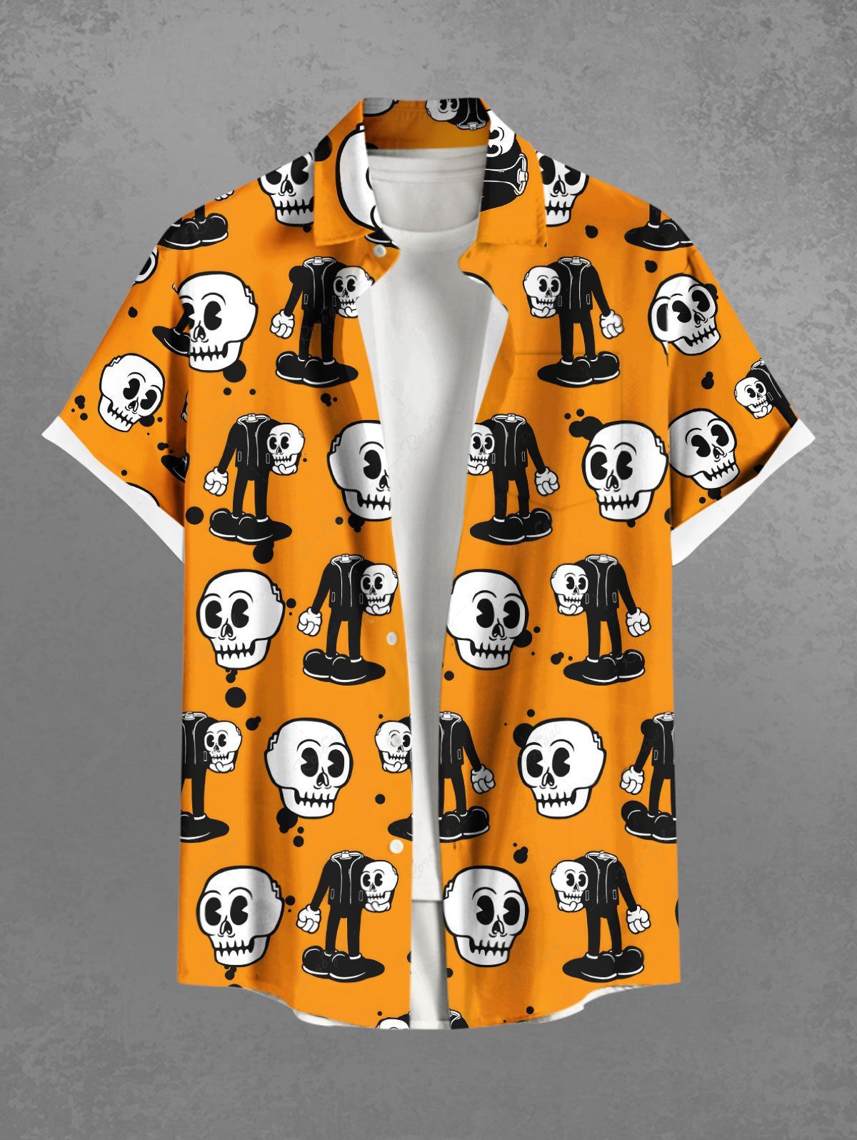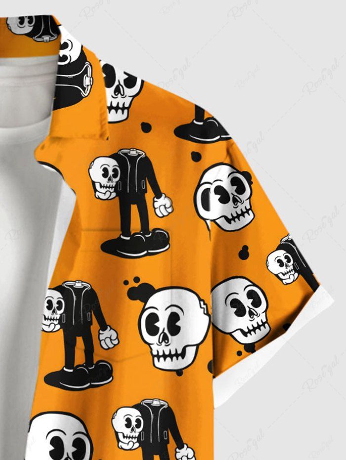 Gothic Plus Size Cute Skull Man Print Button Pocket Shirt For Men