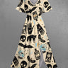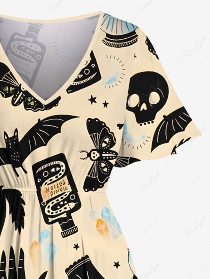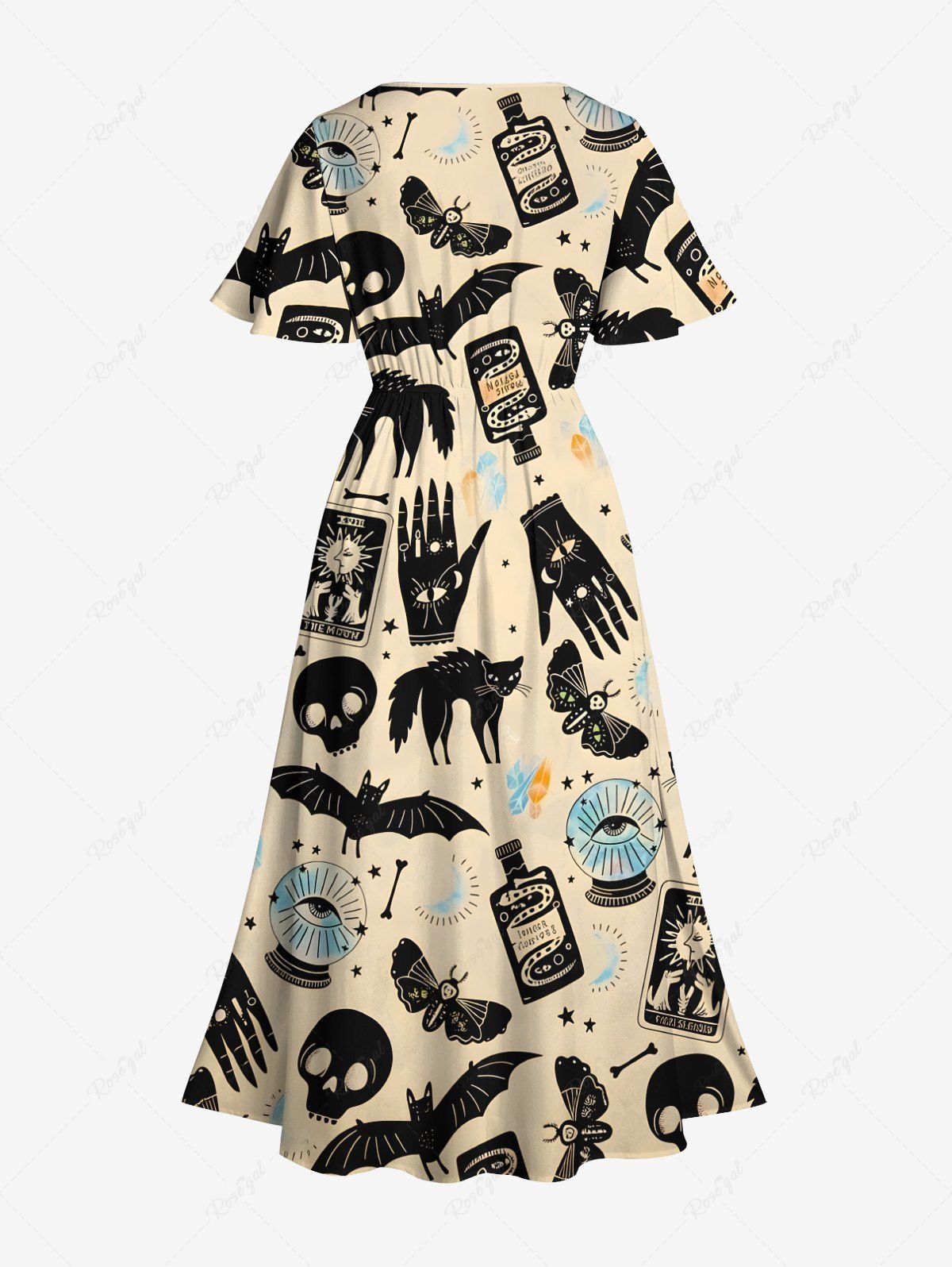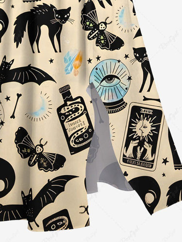 Gothic Plus Size Skull Bat Butterfly Cat Eye Palm Print Split Pocket A Line Midi Dress