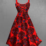 Gothic Plus Size Skull Floral Print Lace Up A Line Tank Dress