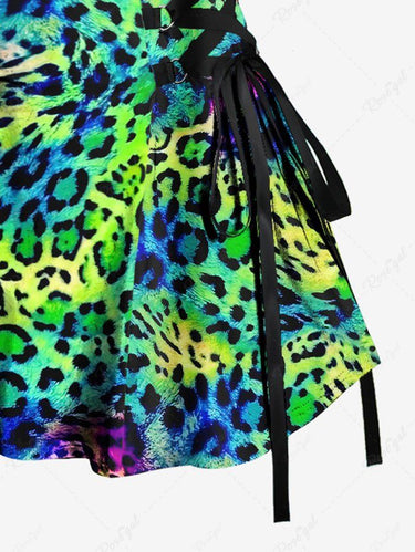 Gothic Colorful Ink Leopard Print Lace Up A Line Tank Dress