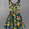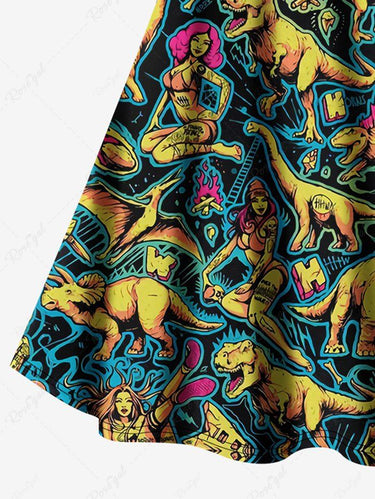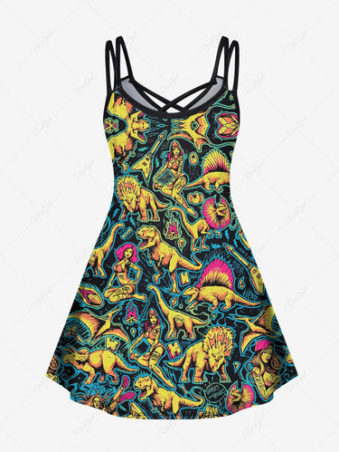 Gothic Plus Size Dinosaur Girls Fire Flame Print Crisscross Cami Dress
