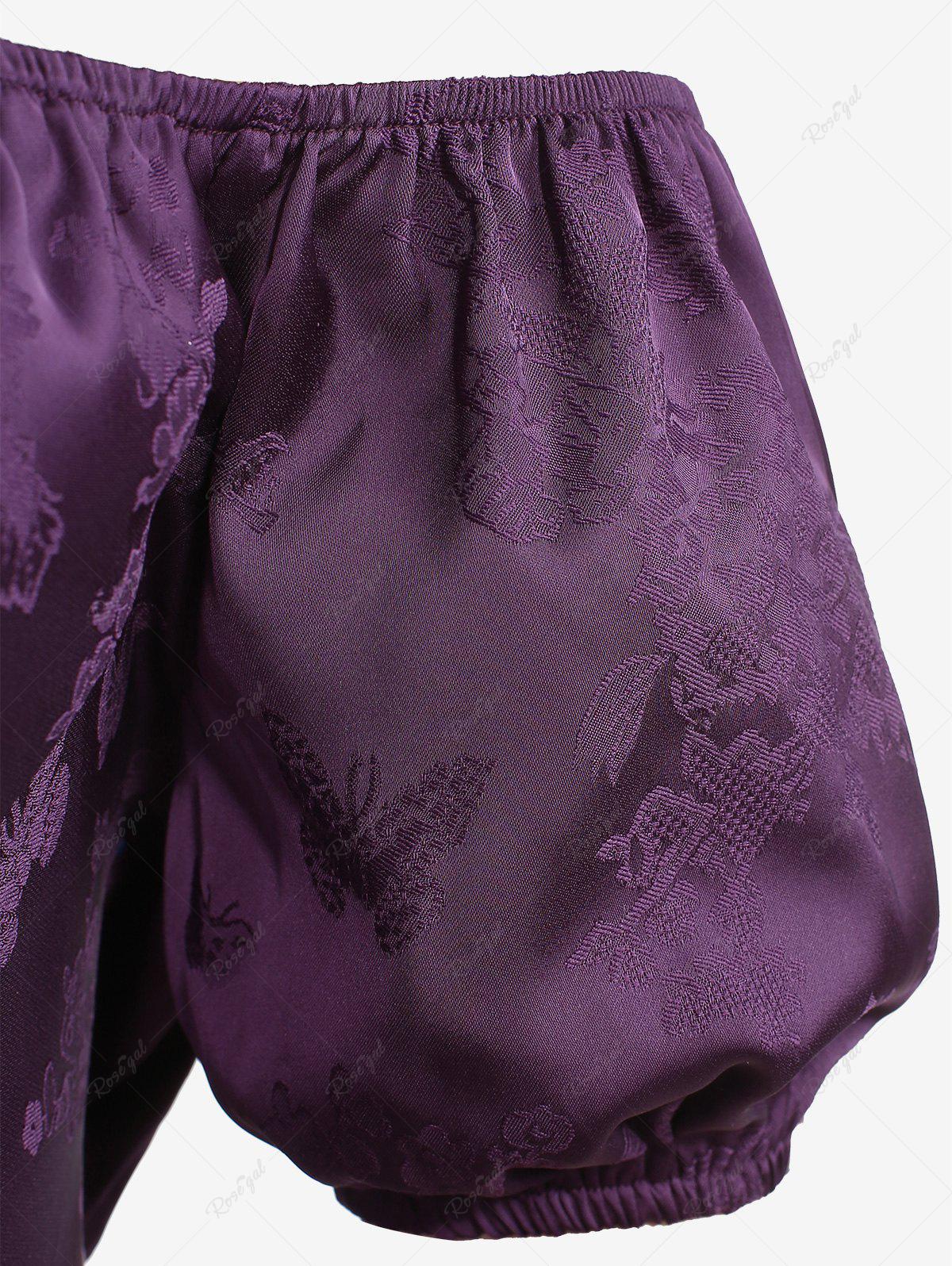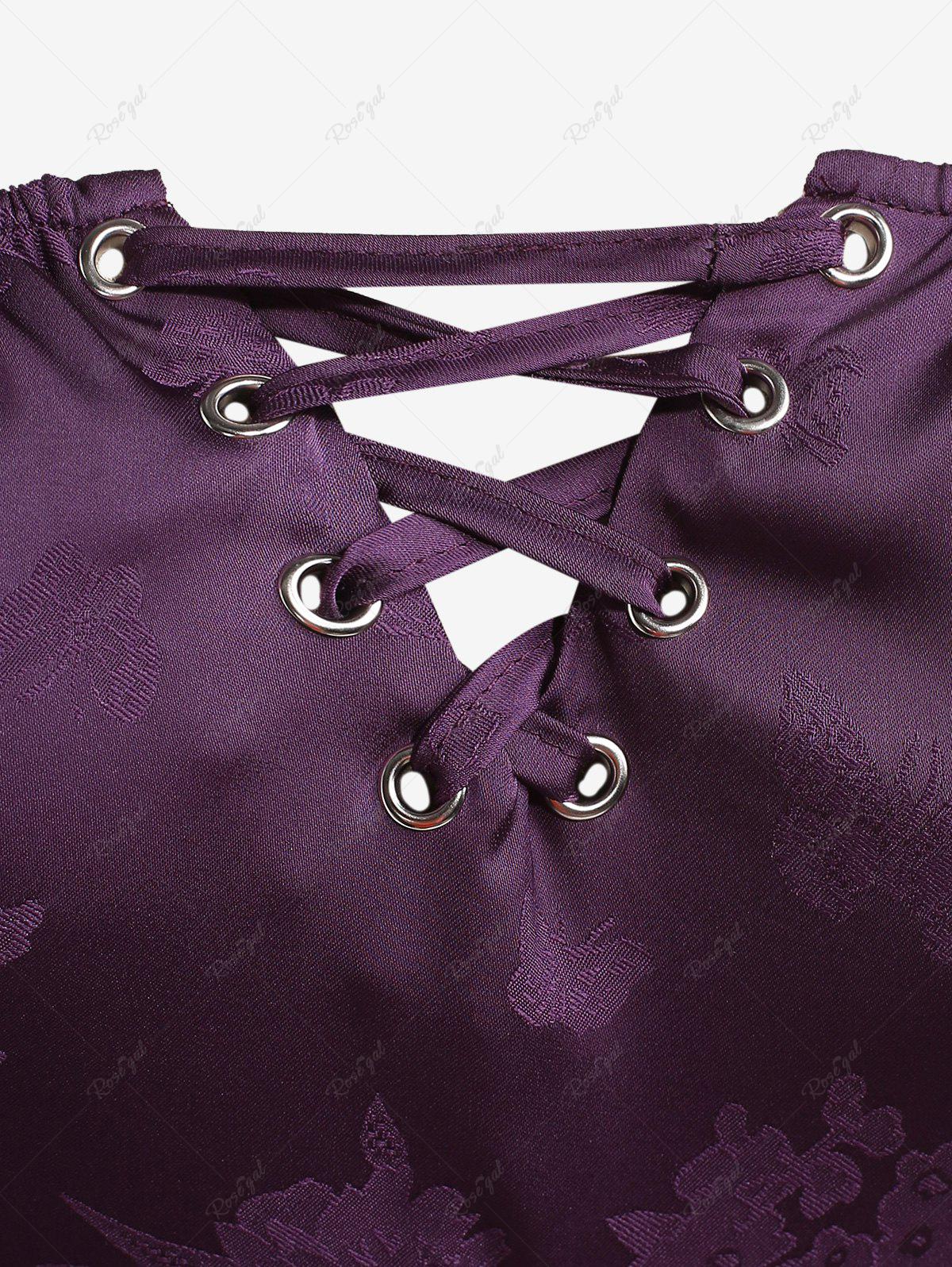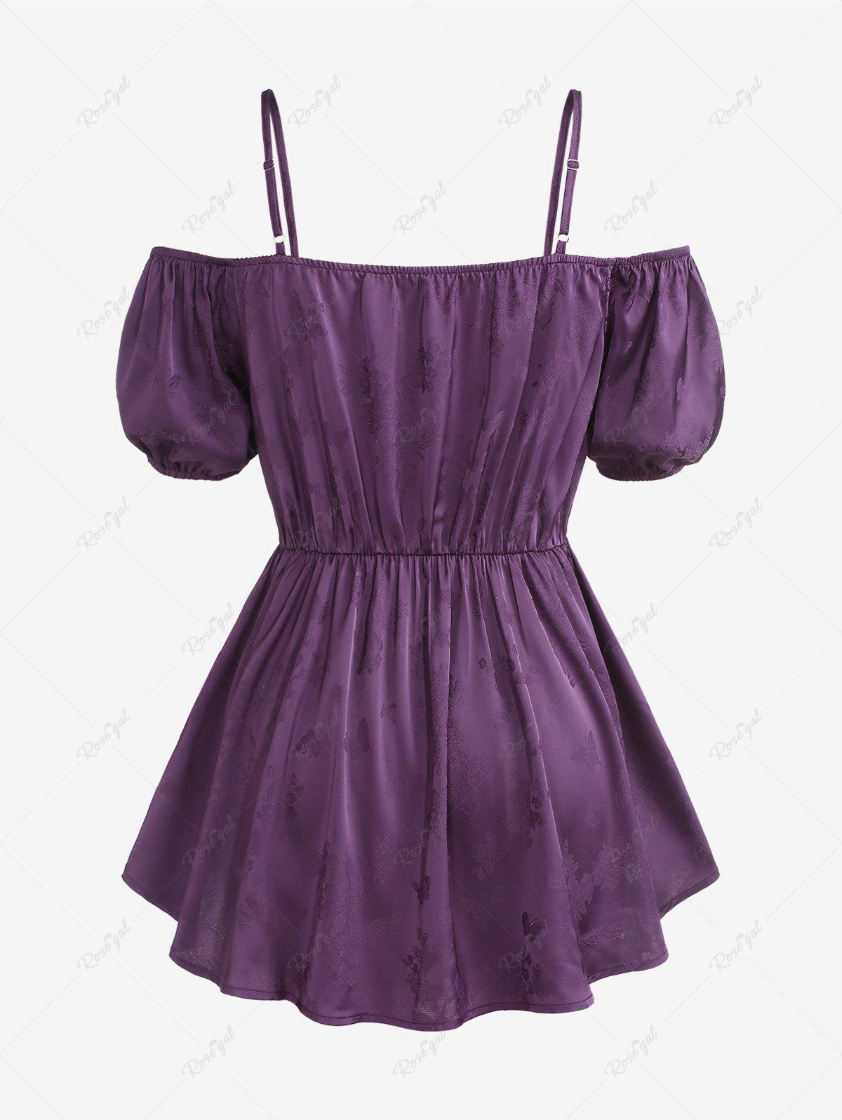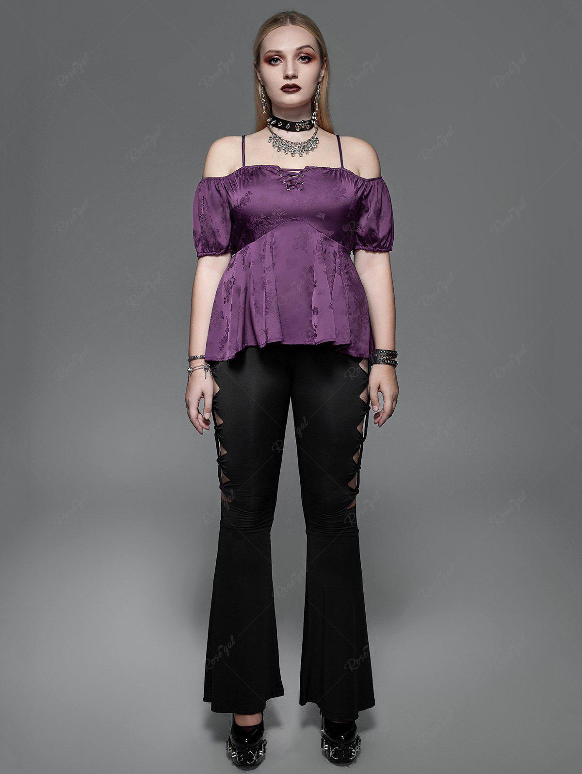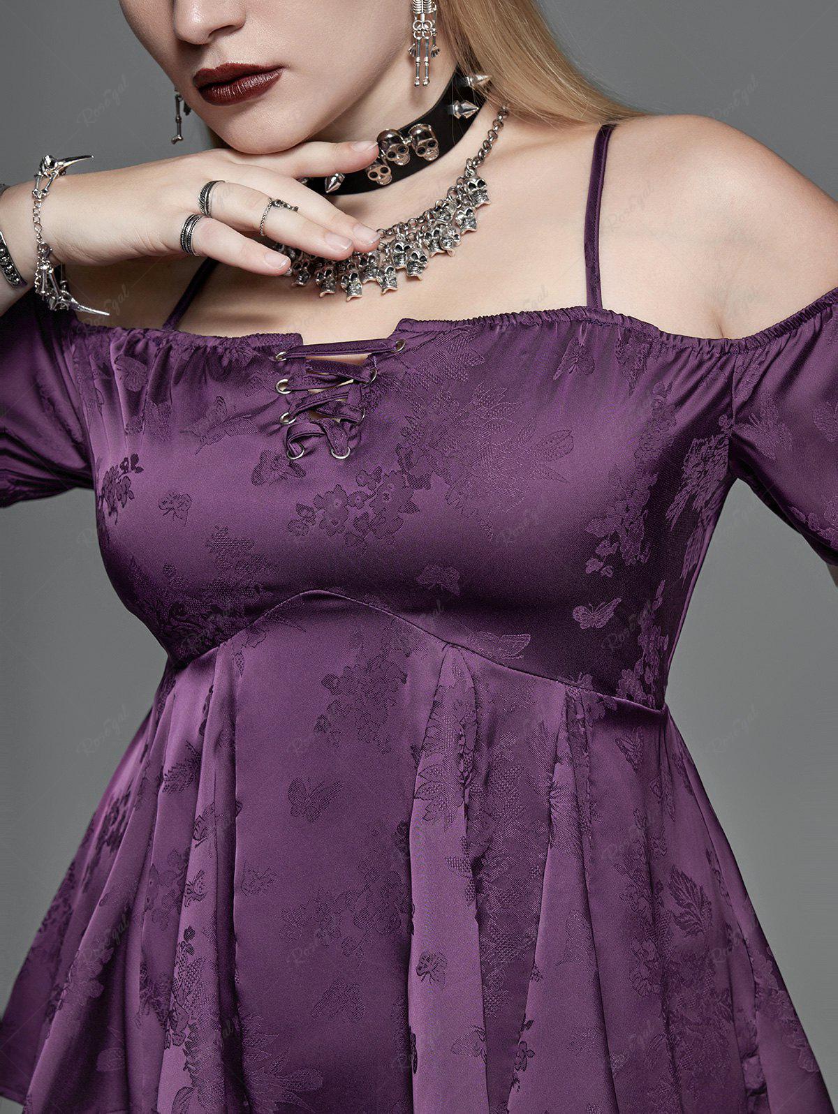 Gothic Plus Size Floral Butterfly Embroidery Lace Up Cold Shoulder Top