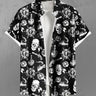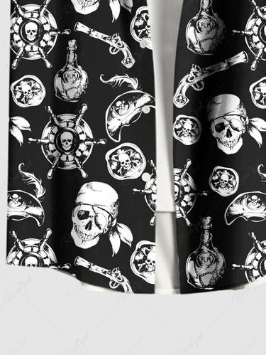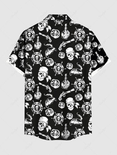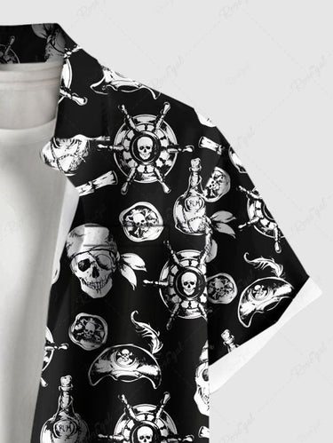Gothic Plus Size Skull Pirate Steering Wheel Fish Print Hawaii Cruise Button Pocket Shirt For Men