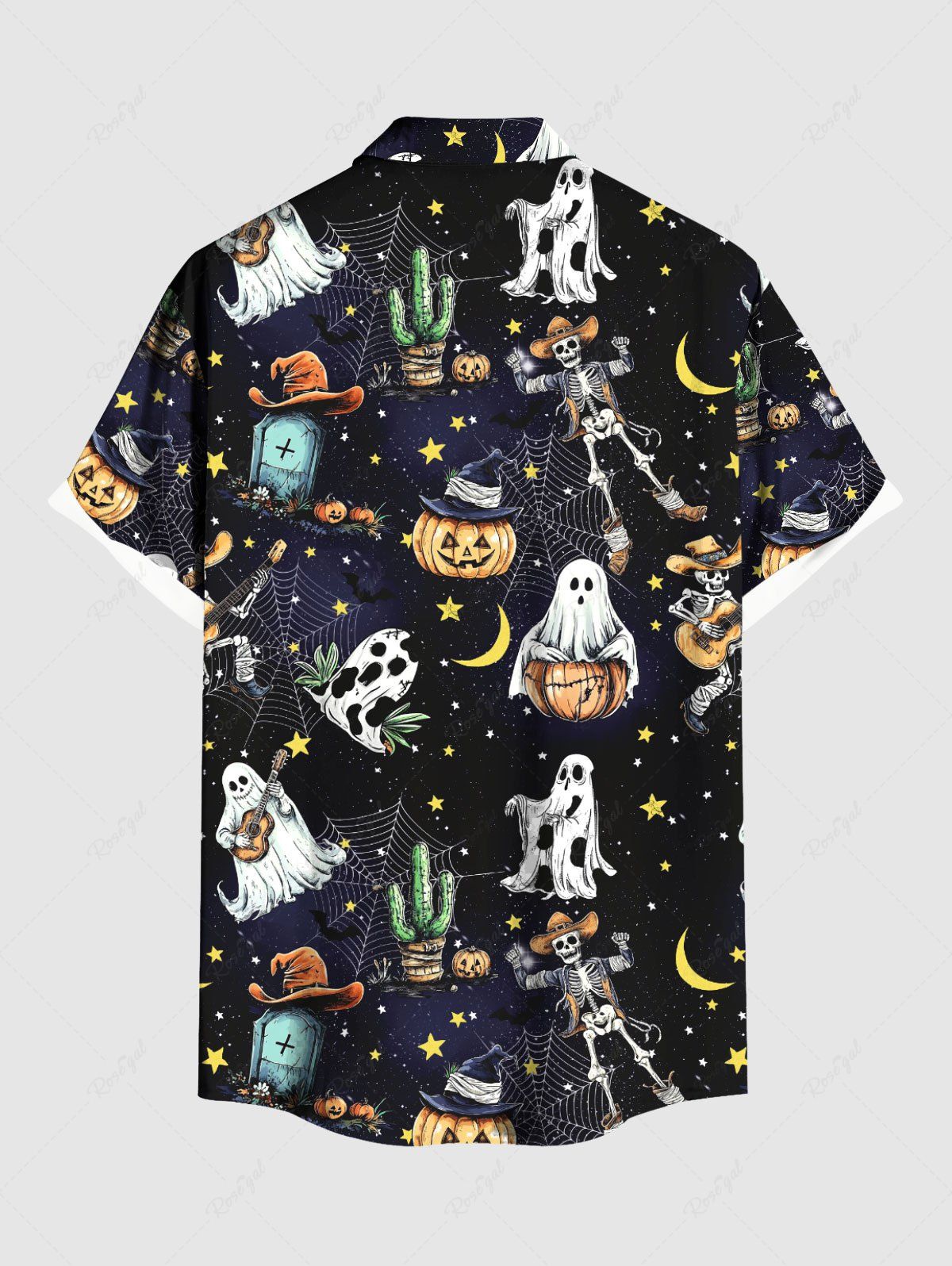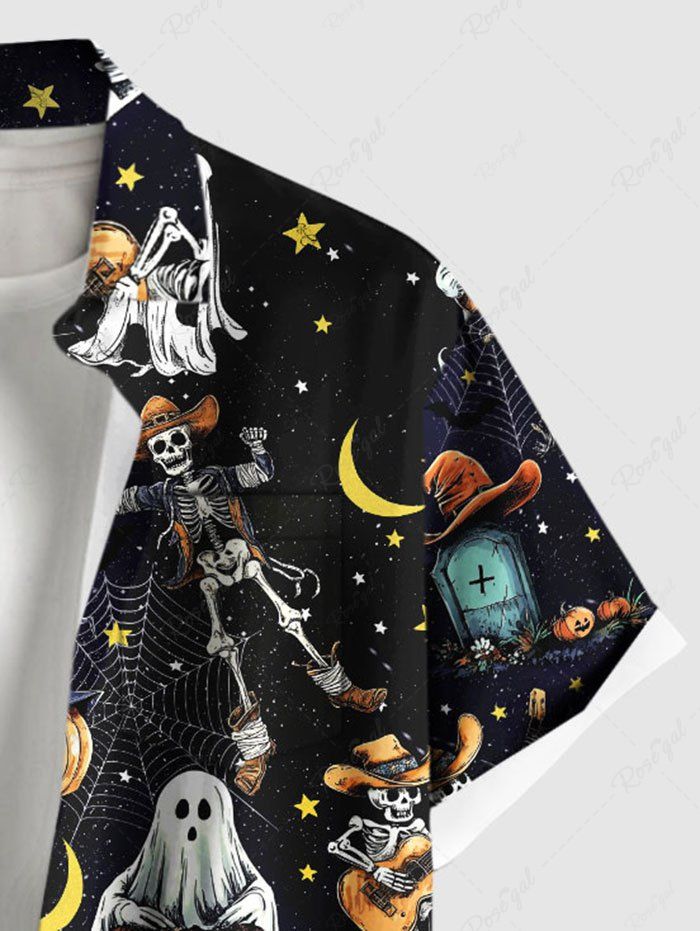 Gothic Plus Size Western Cowboy Style Skeleton Ghost Cactus Spider Web Pumpkin Moon Star Print Hawaii Shirt For Men