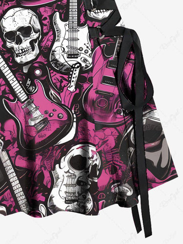 Gothic Skulls Guitar Bell Print Lace Up Backless A Line Tank Dress