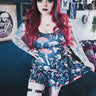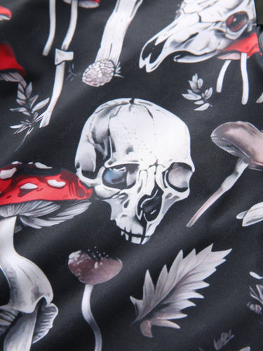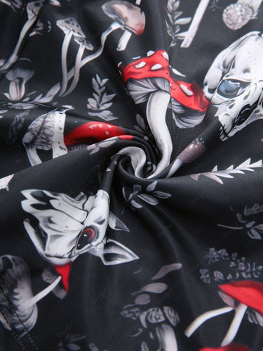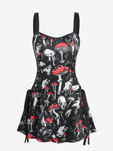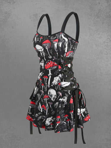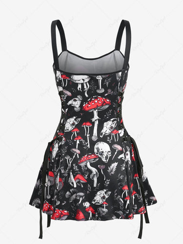 Gothic Skulls Mushroom Leaf Print Lace Up A Line Tank Dress