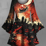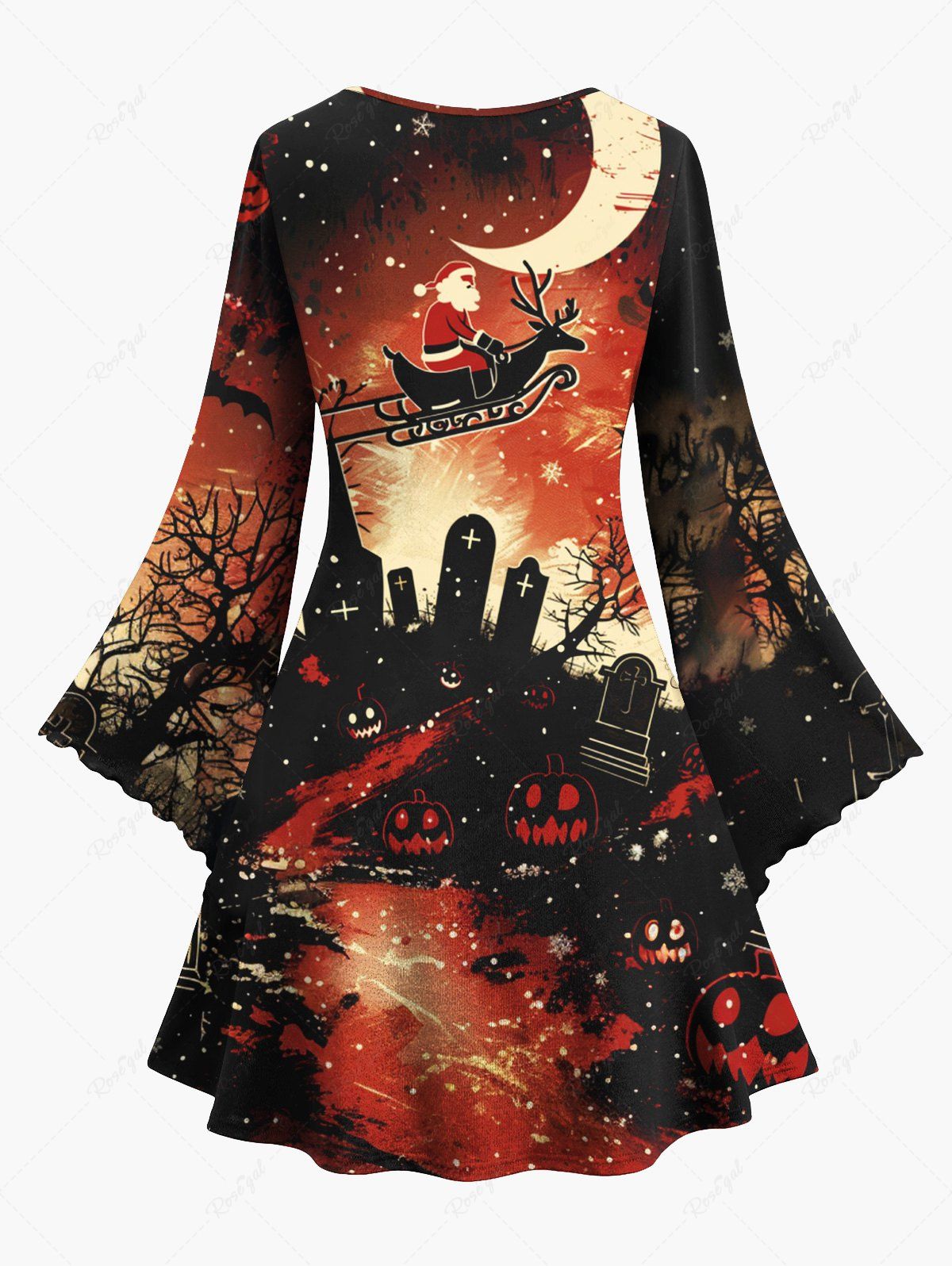 Gothic Plus Size Christmas Moon Santa Claus Elk Sled Pumpkin Tomb Print Flare Sleeves Dress