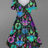 Gothic Plus Size Colorful Sheep Head Flame Sun Moon Galaxy Constellation Divination Print Cinched Ombre A Line Dress
