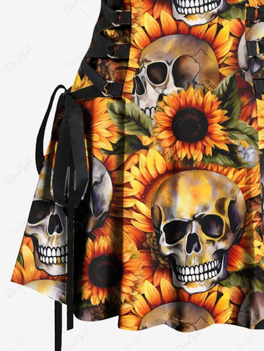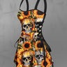 Gothic Skull Sunflower Print Lace Up A Line Tank Dress