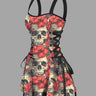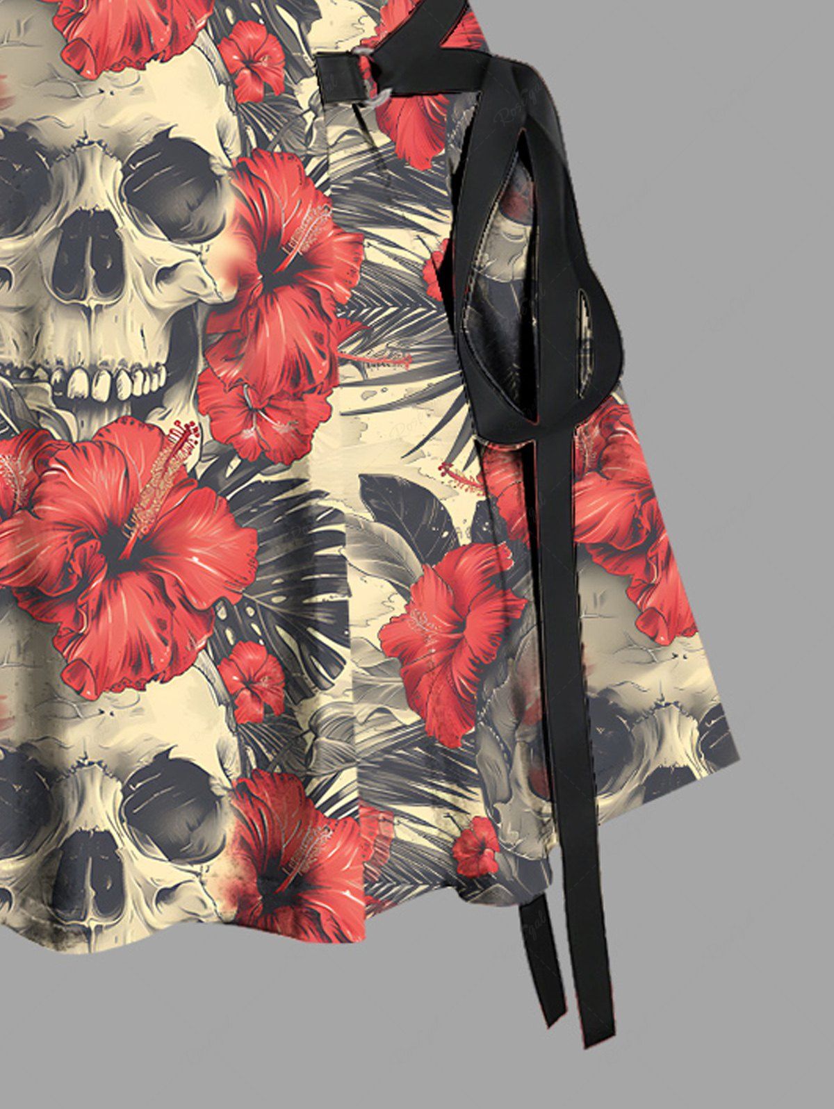 Gothic Skulls Hibiscus Flowers Tropical Leaf Print Lace Up Hawaii Tank Dress