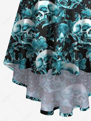 Gothic Plus Size Skulls Flowers Print High Low Dress