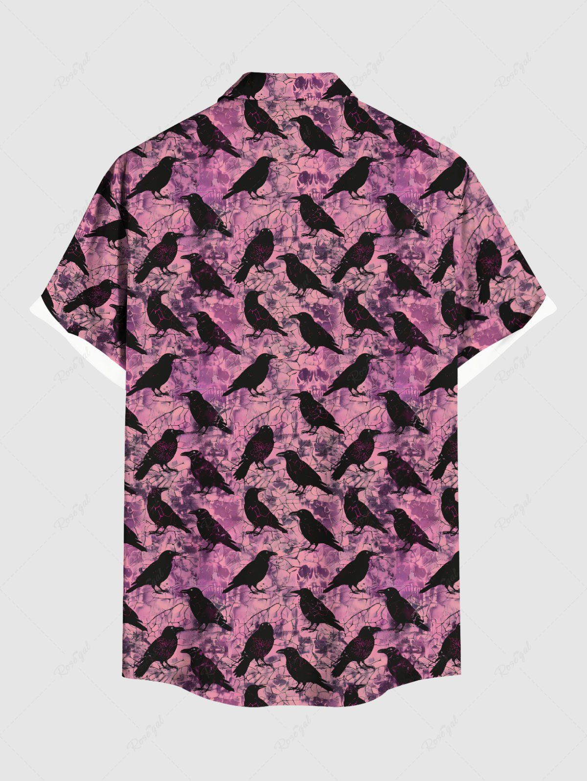 Gothic Plus Size Halloween Crow Tie Dye Print Buttons Pocket Shirt For Men