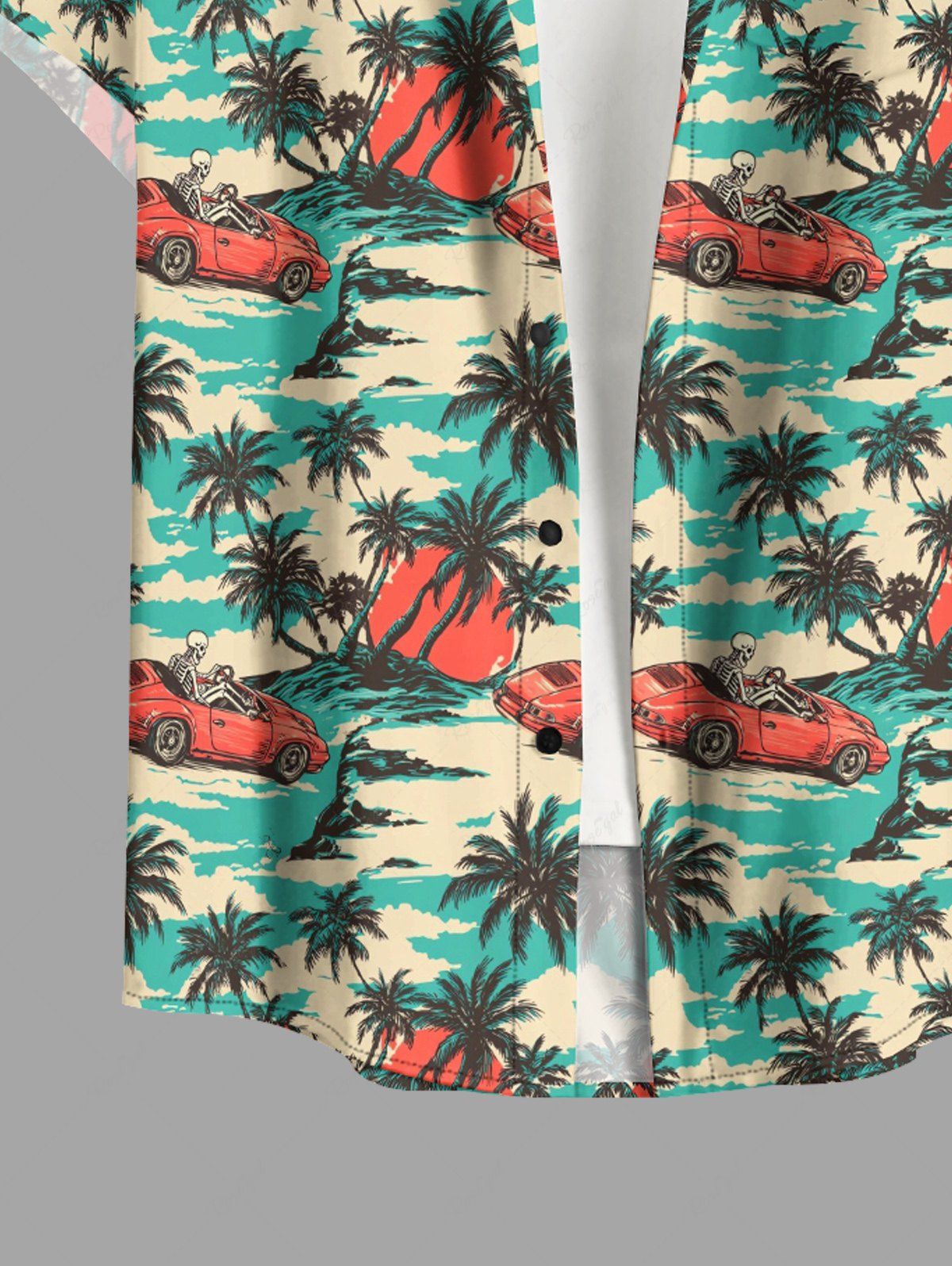 Gothic Plus Size Coconut Tree Car Skeleton Print Button Pocket Shirt For Men